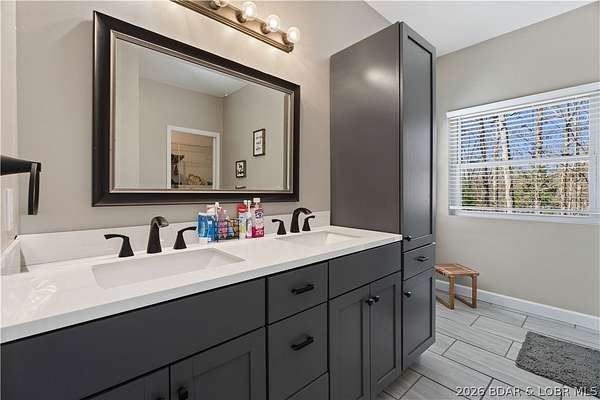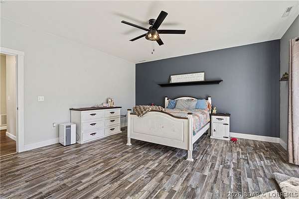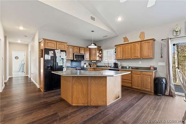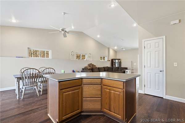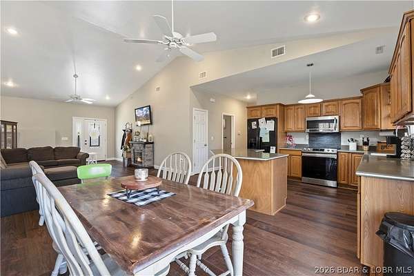 Very well maintained 3 bedroom 2 bath home on 3+ acres just outside of the Camdenton city limits. Spacious open concept living, dining and kitchen with vaulted ceilings and large bedrooms. Lovely kitchen with solid surface counter tops, newer appliances and lots of cabinetry. Newer flooring and paint throughout. The primary bedroom is very large with a beautifully updated ensuite bath with walk-in shower and HUGE walk-in closet. Attached oversized 2 car garage with built in shelving and workshop area. Plenty of space to add an additional shop building or garage. Very well kept home home inside and out!