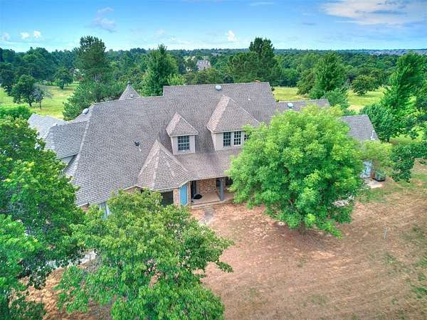 Welcome to 501 Willow Dr-a rare, once-in-a-generation opportunity to own an exquisite luxury estate on 5 manicured acres with the option to expand to a total of 30 acres in highly sought-after Choctaw, Oklahoma. Tucked away in peaceful seclusion, this 4-bedroom, 5.5-bathroom home offers unmatched privacy, elegance, and versatility for homeowners, investors, or developers alike. From the rotunda-style foyer and oak spiral staircase to the panoramic pond views framed by floor-to-ceiling windows, every detail has been thoughtfully curated. The gourmet kitchen features a gas cooktop, double ovens, and flows seamlessly into a spacious living area perfect for entertaining. The first-floor primary suite is a true retreat, with His & Hers en-suites, a fireplace, makeup vanity, and custom walk-in closet. A hydronic radiant floor heating system in the master suite and downstairs main living areas. A second bedroom suite on the main level adds flexibility, while two upstairs guest suites offer private baths for family or visitors. The richly appointed home office with wood burning fireplace, dedicated media room, and a detached shop with full electric and finished office space complete the package. Outside, enjoy your private pond and dock, 1950 sq. ft. steel building or explore the development potential of the adjoining 25 acres-preliminarily platted for 17 one-acre residential lots with road frontage and nearby utilities. Whether you dream of a private legacy estate, a new residential community, or both, this property delivers the location, lifestyle, and long-term potential you've been waiting for.