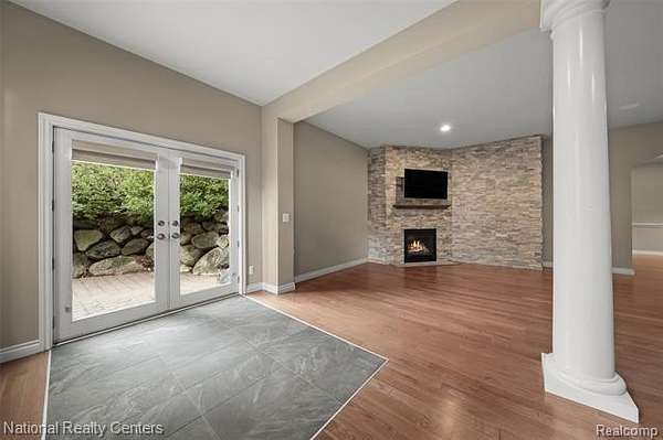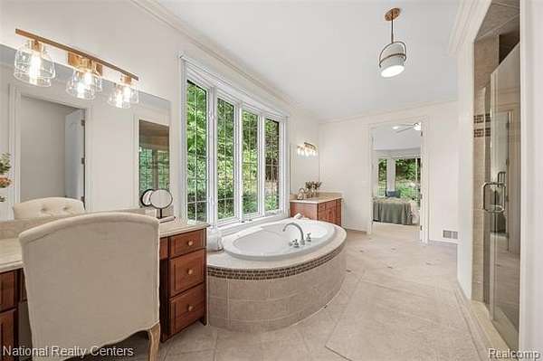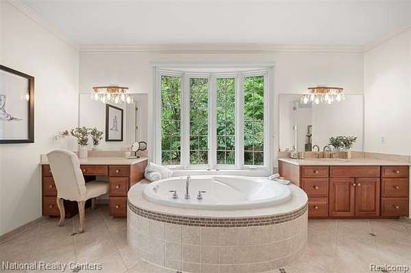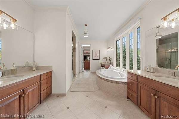 Exquisite French country-style colonial set high on a hill of Independence Township's highly sought after Hilltop Estates Subdivision 2. Enjoy the peaceful solitude of this 1.5 acre mature wooded lot with views of nature all around this professionally landscaped gem. Exceptional layout for both the family and for entertaining. Gourmet kitchen with custom cabinets, imported Croatian Volga blue granite tops, new appliances, large island and bar seating. Main level primary suite with dual vanities, walk-in shower, jetted tub and amazing walk-in closet with natural light streaming in from large windows. Dedicated home office on main level. Upper level features a guest bedroom, full bath, loft area, bonus room and two bedrooms with a Jack and Jill bathroom. Outstanding finished walkout with hardwood floors, bar, pool room, family room with gas fireplace, bedroom and full bathroom. 4-car side entry garage. Great outdoor entertaining space on the covered porch and paver patio. Yard is set up for invisible pet fence. Central vacuum and Generac 22KW whole house generator. Annual HOA fee covers snow plowing and common area maintenance. Listing Agent is related to the Seller.