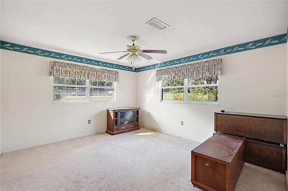 Come take a look at this Excellent Opportunity to own 13 acres in rural Lady Lake. This 4 bedroom 2 bath home (with a 2 car garage) was built in 1966 and has plenty of space with over 2000 square feet and lots of opportunities to update / upgrade. The 13 acres of land is broken in to 2 parcels. The home sits on approximately 2/3rds of an acre and an additional 12.3 acres of land comes with the sale, and together form a large nice rectangular property. The additional parcel has never had a home built on it, so it should allow for the construction of at least one additional home and/or outbuildings. The existing structure had a series of upgrades around 2012 with new windows, roof and AC at that time. Walking in, you are greeted by a foyer which leads you into either your large living area with a large lanai off to the rear or your kitchen/dining area off to the right. There is a full master suite on the far Northwest wing of the home with sliding glass doors leading out to the Lanai. An additional 3 bedrooms and bathroom lie in the hall in route to the Master Suite. If you desire a family compound, consider purchasing the 20 acres available next door with a 1930's cottage on it for $545,000 (MLS#G5088259) for a total of 33 acres and 3 parcels. Come take a look today while this remaining piece of Rural Lady Lake is still available. Conveniently located to The Villages, Lake Griffin and Leesburg. Don't forget to bring the Horses, RV's and ATV's!