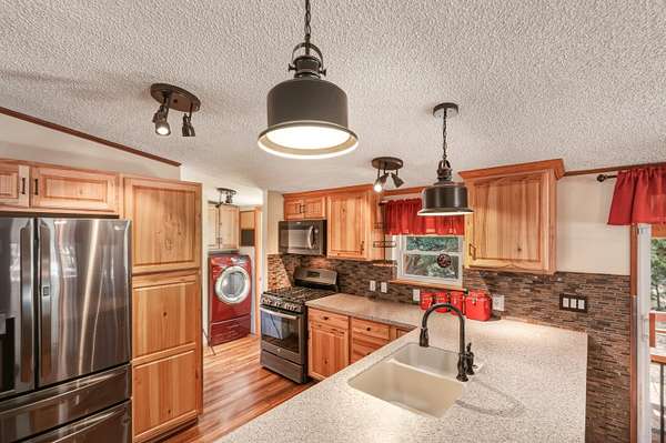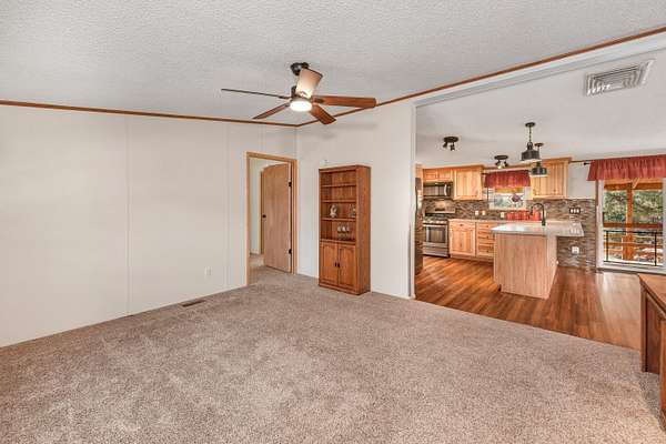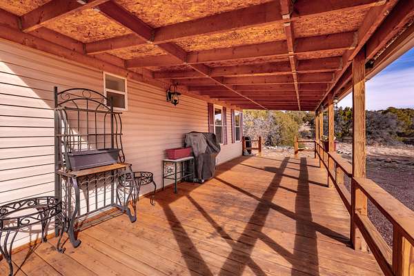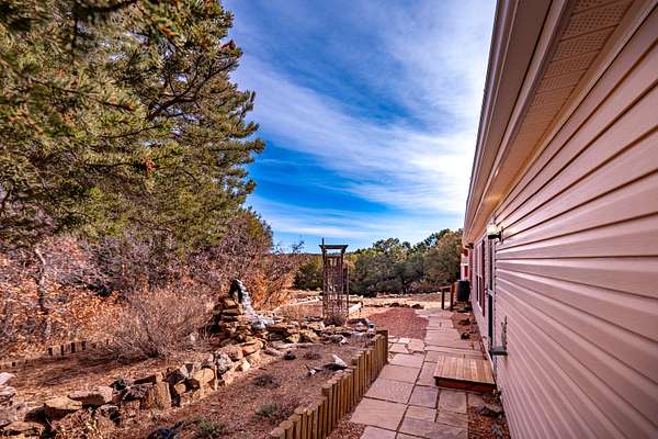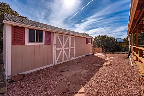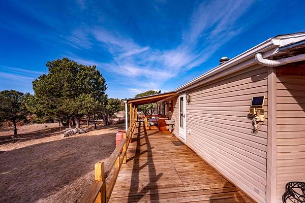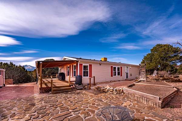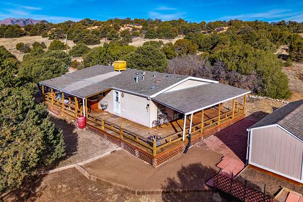 Welcome to a private Colorado property where thoughtful design meets expansive outdoor living. This newly listed 2-bedroom, 2-bathroom home offers 1,188 square feet, and 2.28 acres of well-appointed space, connecting seamlessly to over 80 acres of greenbelt property for unmatched privacy and natural beauty. Inside, the living room transitions effortlessly into an updated kitchen featuring modern appliances, refreshed cabinetry, and contemporary lighting. The kitchen extends into a versatile dining/bonus room with direct access to a covered deck -- perfect for savoring Southern Colorado's stunning sunrises and sunsets. The primary suite delivers comfort with a generous closet, spacious bathroom with a walk & roll-in shower, and additional linen storage. A wraparound deck provides entertaining possibilities, while the gravel circle drive, RV hookup ensure convenience for every lifestyle. A storage shed with an integrated workshop adds practical value for a variety of projects. Additional features include an on-demand hot water heater, professional landscaping complemented by water-wise xeriscaping, community water access, and county-maintained roads. This home strikes a rare balance between cozy comfort and outdoor freedom, making it an exceptional find. Call today!