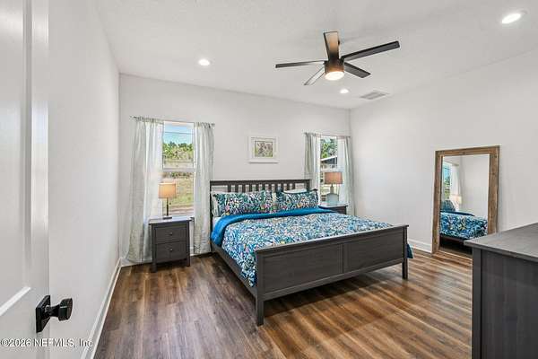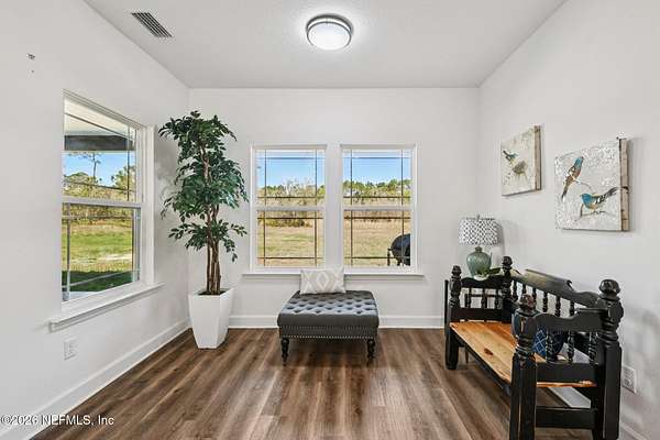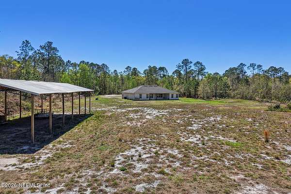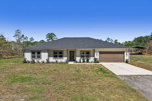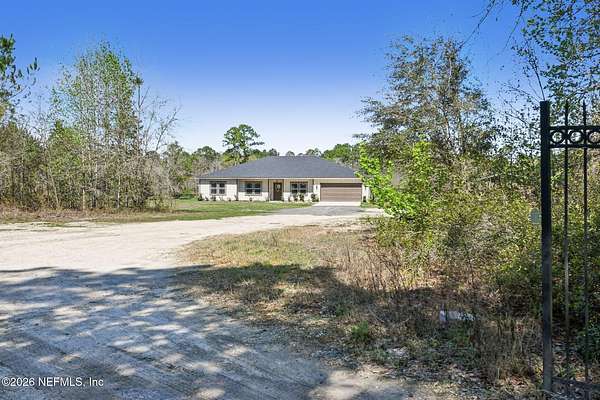 Tranquil, private oasis built in 2024! Drive through the gated front to this custom home that sits on a partially cleared 5-acre lot with no visible neighbors. Designed with an open floor plan and abundant natural light, the home features 4 bedrooms and 3 baths with modern finishes throughout. The spacious primary suite includes a well-appointed bath with dual vanities, step in shower, and two walk-in closets. Bedroom 4 is a full suite including a private bath. Kitchen and living areas showcase quartz counters and durable LVP flooring throughout combining style and functionality. Additional highlights include an oversized attached 2-car garage and generous covered back porch, perfect for relaxing or entertaining while enjoying the peaceful surroundings. A massive 30x72 pole barn offers endless possibilities for storage and hobbies. Blending modern design with serene, private acreage, this property is a rare find. Take advantage of NO property taxes for the remainder of 2026!