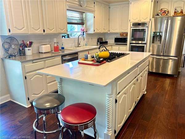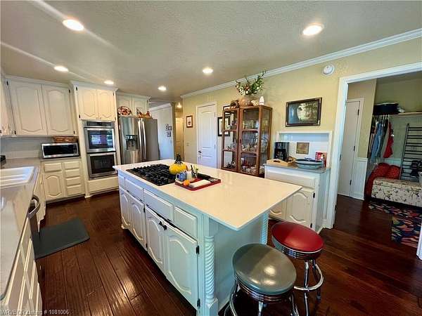 Welcome to your private retreat in the heart of Southeast Oklahoma! Situated on 4.45 acres, this 4-bedroom, 2.5-bath home offers room to grow, relax, and enjoy the beautiful surroundings. With a versatile flex room that can serve as a 5th bedroom or home office, plus a dedicated workout room, there's space for every lifestyle and all the storage you could ask for.