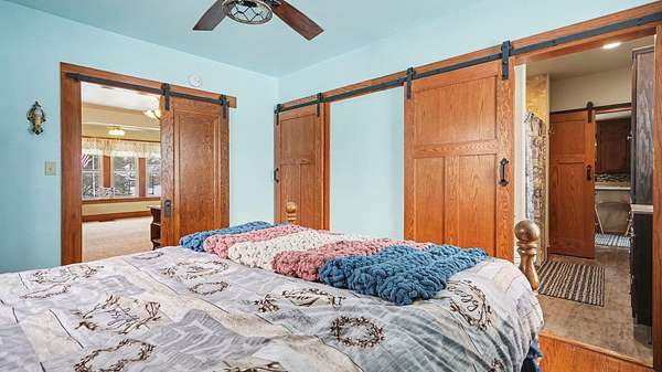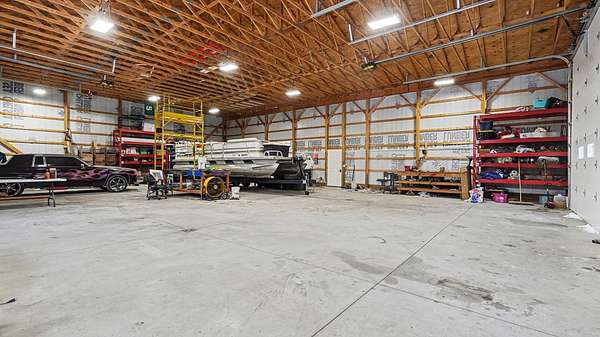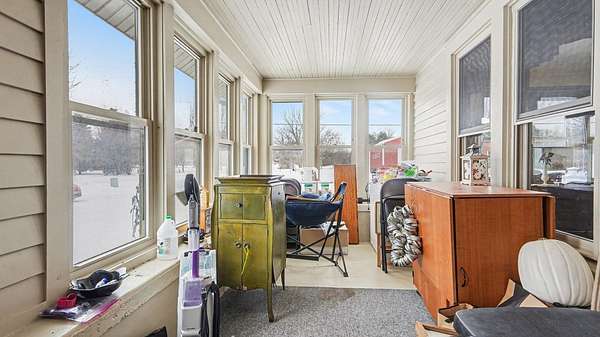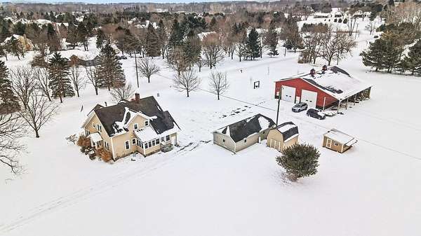 Updated five-bedroom home with two full baths, including a main-level primary suite. Bright and welcoming, the home features abundant windows and an open floor plan that seamlessly connects the kitchen, spacious dining area, and family room with a cozy gas fireplace. A dedicated home office just off the living room provides an ideal space for remote work or study. Enjoy year-round comfort in two heated porches overlooking 4 scenic acres-perfect for relaxing and taking in the views. The property also offers a large garage, pole barn, and two additional storage buildings, providing ample space for equipment, hobbies, toys, or animals. With plenty of room for gardening, outdoor recreation, and true country living, this property offers flexibility to suit a variety of lifestyles.