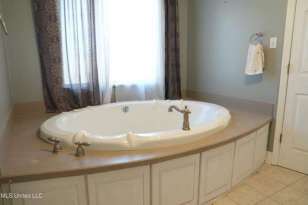 A large master suite with a spa-style bathroom