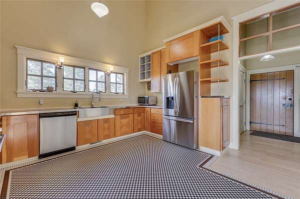 This architectural award-winning home sits on a nearly 20-acre homestead with exceptional views of the Beartooth and Crazy Mountain ranges, fenced corrals, a large shop with an apartment-style in-law suite with a recently updated bathroom, a barn with horse stalls, and a vineyard. This rustic three-bedroom, two-story home has geothermal heating and newly refinished floors. The kitchen has wooden cabinets, modern appliances, a farmhouse sink, and a tiled floor. The stately great room with a 30-ft vaulted ceiling is flooded with natural light by wall-to-wall windows, exposed beams, and a timeless wood-burning fireplace. A recently remodeled bathroom with a newly installed bathtub rounds out this home's main-floor living space. This property offers unparalleled beauty and functionality. The large shop on the property offers ample room for hobbies and storage, with an additional full bathroom. Buyer/buyer's agent to verify. Info deemed reliable but not guaranteed.