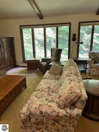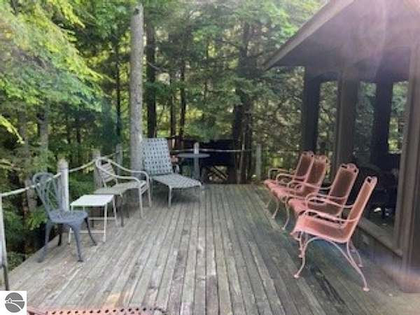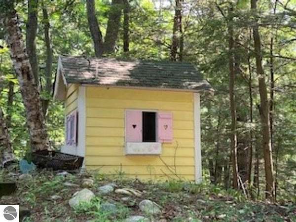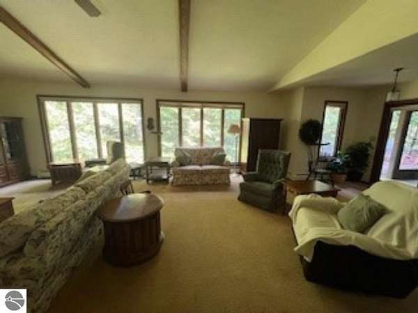 This home in the attractive Michabou Shores Subdivision is about 2,800 Sq', 4 Bedrooms, including a 4 bed bunk room (sleeps 8!) and 2.5 baths on a 2+ Acre (about) lot. It has a drive-under 2 Car Garage, and is nestled quite nicely in the soothing forest. Built in 1983, it's winterized, although the family closes it during winter, so occupied less than half of each year. It has great bones, and of course features the beautiful Michabou Shores 200' of pristine Shared Lake Michigan Beach, which is absolutely spectacular. Also, the Michabou Shores property abuts the gorgeous Crystal Downs Country Club, which has been rated by Golf Digest Magazine as the 14th Finest Golf Club in America, although Crystal Downs Membership is not included with the purchase of this home.