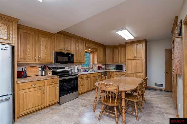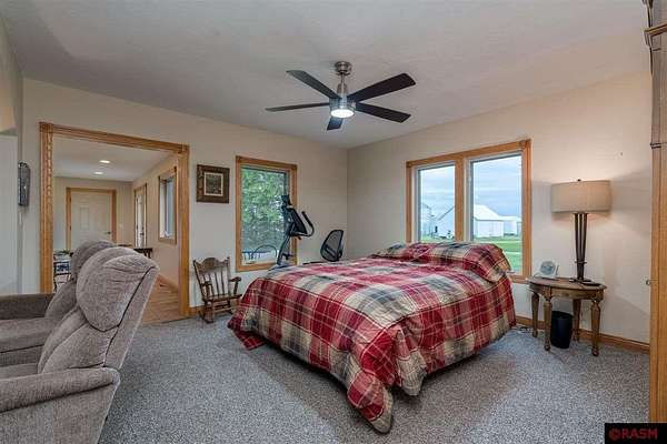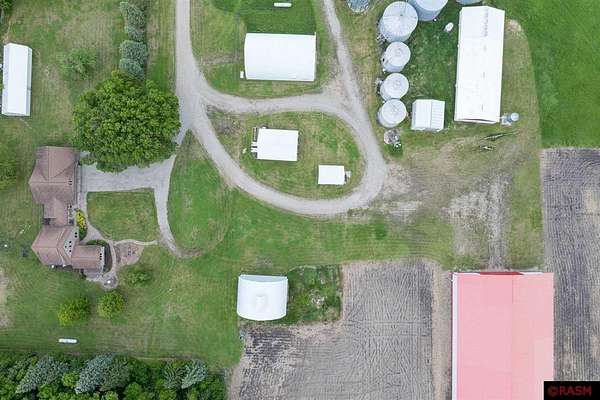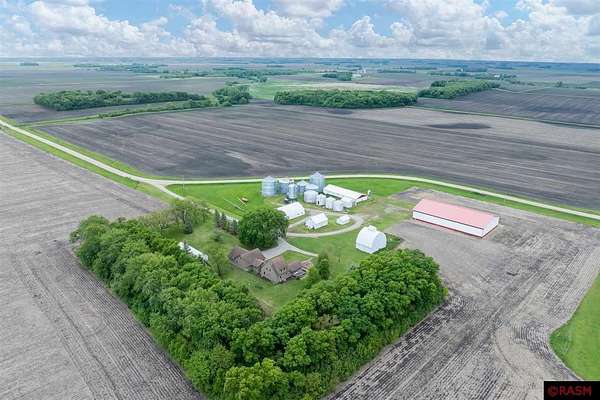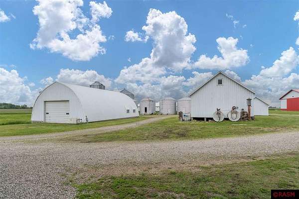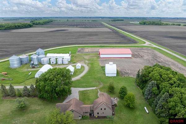 Fantastic opportunity to own a well-maintained and move-in ready 3 - 4 BR home with triple attached garage, PLUS numerous outbuildings and a bin site with dryer bin, wet holding bin, air transfer system and 130,000+ bushels of grain storage. Other outbuildings include a 80x135 steel utility building built in 2013, a 36x100 hog building with 8' pit, and a 40x60 quonset. The house offers a warm and inviting sunroom, remodeled kitchen, cozy living room with gas FP, formal dining room, lower level and main floor laundry, main floor BR or office, 3 upper level bedrooms and 3 baths. Maintenance free steel siding and shingles, heated triple attached garage with bonus room above, deck, a beautifully landscaped yard and compliant septic system are some of the noteworthy items. Call for more details!