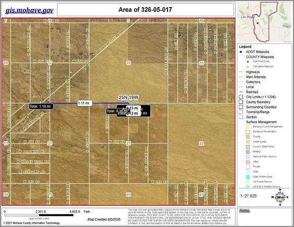 5-Acre Parcel Near Town with Power at Lot Line APN 326-05-017 Prime location just outside Dolan Springs with easy access and stunning panoramic views! This 5-acre parcel offers a unique blend of rural tranquility and convenience to town amenities. Located off N. Chicory Dr, this property sits on the east side of Dolan Springs in a more developed area with power at the lot line and well-maintained road access saving you thousands on future development costs. Zoned Agricultural-Residential (AR), allowing manufactured or site-built homes, RV use, livestock, and off-grid living. The terrain is mostly level and usable, ideal for building your dream home, a vacation retreat, or a smart land investment. No HOA. Close to local gas stations, shops, and services, yet just 1 hour to Kingman and under 2 hours to Las Vegas. Utilities: Power nearby, well and septic will be needed Access: Easy road access **Views: Mountain and desert landscape in every direction