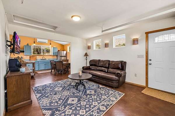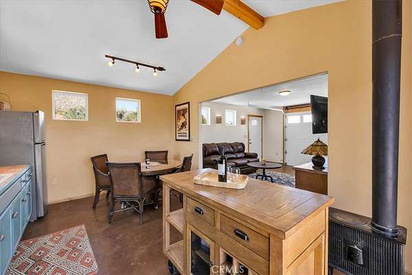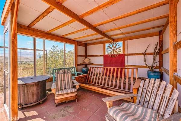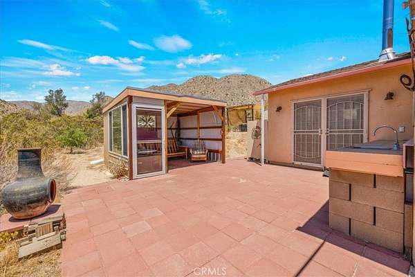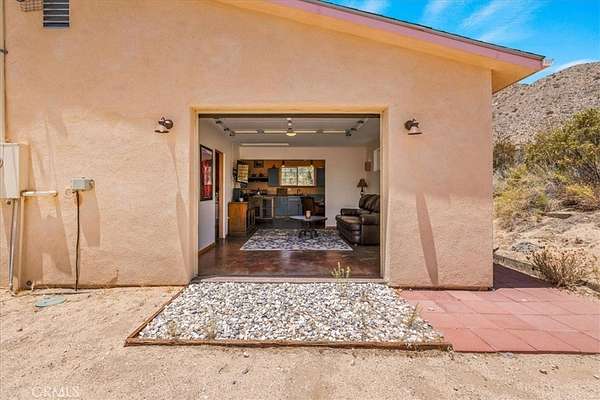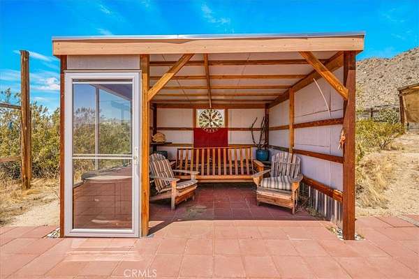 Discover rustic elegance and desert tranquility in this beautifully remodeled and permitted 1-bedroom, 1-bathroom home, originally a classic cabin, now transformed into a stylish retreat. Situated on a little over 7 acres (4.53 acres + additional 2.5-acre parcel), this property offers space, privacy, and unmatched views of the Morongo Valley landscape. Inside, the home features thoughtful upgrades that blend modern comfort with cabin charm with an open-concept layout, including a roll up door that brings the outside in! The main part of the home has stained concrete floors to keep it cool in the summer, and the kitchen has a wood burning stove for extra heat to create a warm and inviting atmosphere. There's also mini split for heat and a/c for even more climate control. The spacious bedroom opens to wide desert skies and serene mornings with access to the south facing patio. Step outside to your private outdoor living area, designed for entertaining or peaceful evenings under the stars. Relax in the hot tub while taking in views of the surrounding hills and open desert--perfect for stargazing or soaking after a long day. Whether you're looking for a weekend escape, full-time residence, or unique investment property, this one-of-a-kind desert gem offers a rare combination of character, land, and lifestyle. Just minutes from Joshua Tree, Pioneertown, and the Big Morongo Canyon Preserve, and a short drive "down the hill" to Palm Springs and the low desert!