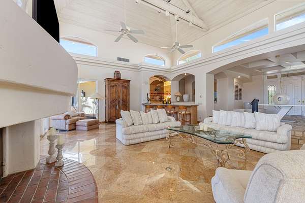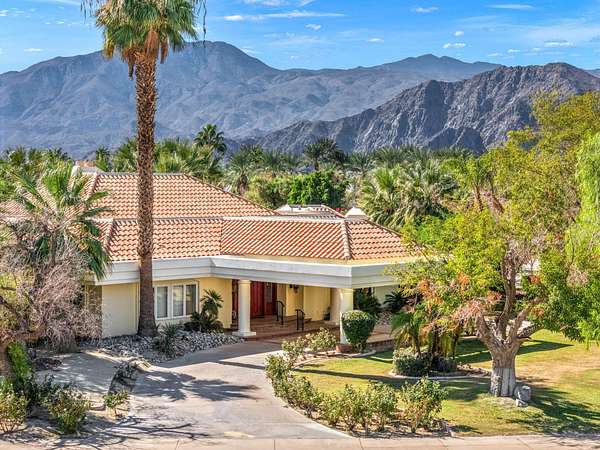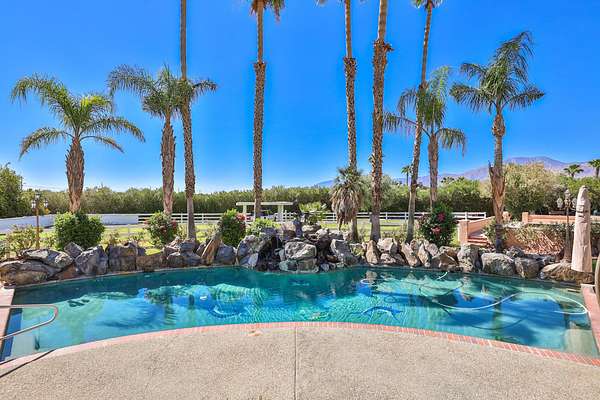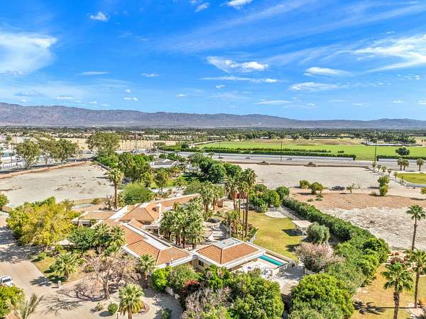 Welcome to Vista Montana Acres, a 2.5 acre equestrian estate comprised of 2 properties. The first is a spacious 5 bedroom, 4.5 bath home with stunning wood planked cathedral ceilings, an open concept kitchen with professional grade stainless steel Viking appliances, separate formal dining and living rooms, full wet bar,perfect for entertaining as well as 3 grand fireplaces and a two room master retreat with spacious en suite containing a spacious walk in closet, large glass enclosed shower, separate soaking bathtub and gorgeous exterior views including the panoramic southwest mountain scenery that surrounds. The second house is comprised of a 2 bed, 2 bath guest house containing a kitchenette and private laundry for added convenience! Both are tastefully furnished with western stylings and separated by a beautiful pool complete with descending rock waterfall, secondary lap pool, above ground spa and built in barbecue area, large covered patio with misters as well as a large fully enclosed grass pasture and covered stable for your equestrian needs. Located on a secluded street surrounded by lush landscaping for ultimate privacy within the exclusive gated community of La Quinta Polo Estates with modest HOA dues, directly across from Eldorado and the Empire Polo Fields, Coachella Valley's premier destination for world-class polo competitions. Seller financing available.