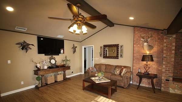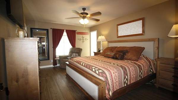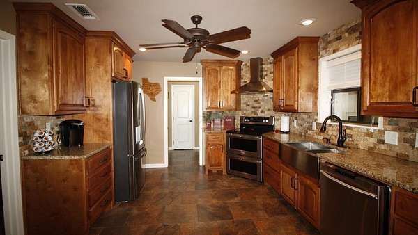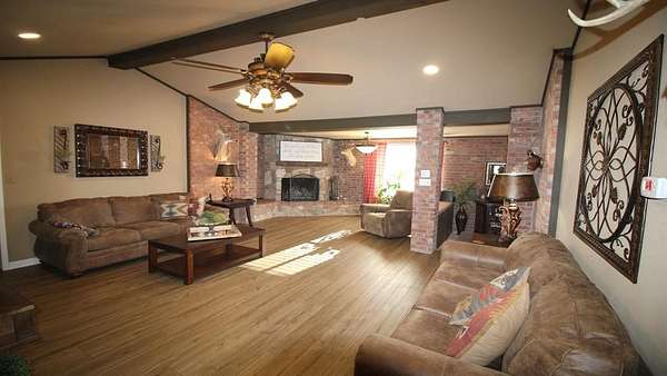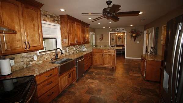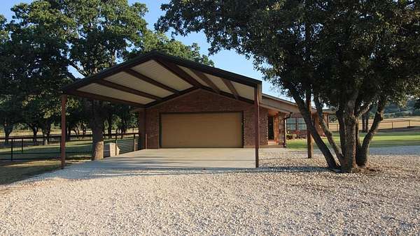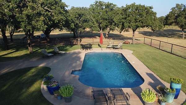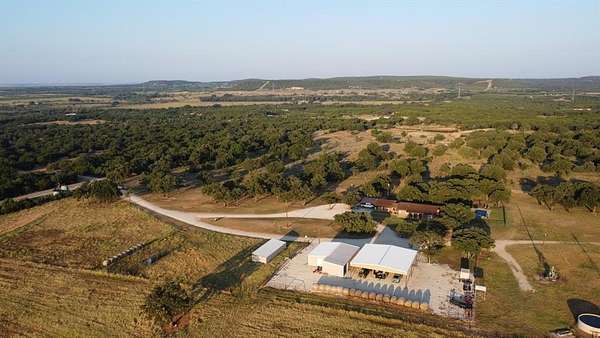 1984 offers 2,467 sq ft, with 4 bedrooms, 3 full baths, a phenomenal kitchen, a spacious dining room, a fireplace, and a full garage with additional covered parking. The backyard is exceptional, with a saltwater swimming pool that features incredible ranch views and ample space for entertaining. There is a 50x50 barn, a 50x38 barn with roll-up doors, and a 16x46 barn. The land is flat to rolling, and the current sellers won conservationist of the year for their dedication to planting a large variety of grasses and land clearing for optimal stewardship. There are two large stock tanks with giant blue cats, lush oak groves, and prime hunting. This ranch is a corner property with a gated entry and cross fencing located in the Jim Ned CISD. This charming ranch is highly improved in all aspects, from its superb grasses to the thousands of oaks to the updated home with all new features. The Oaks Ranch has been properly managed to produce year-round recreational potential. Come explore this superior ranch property!
