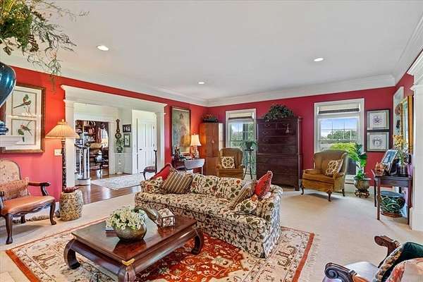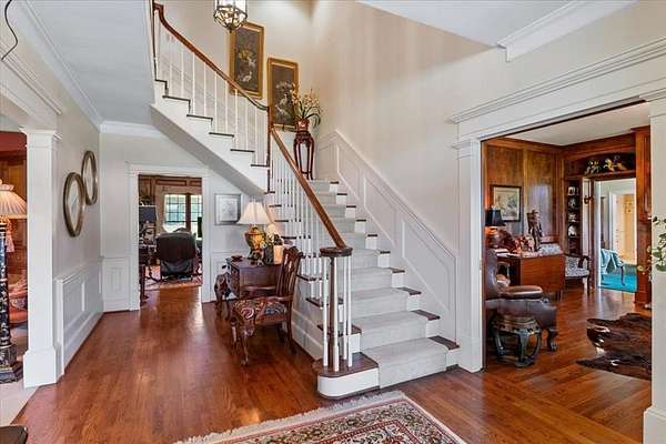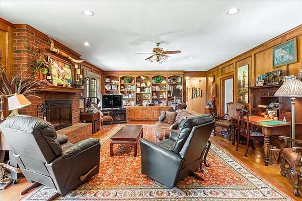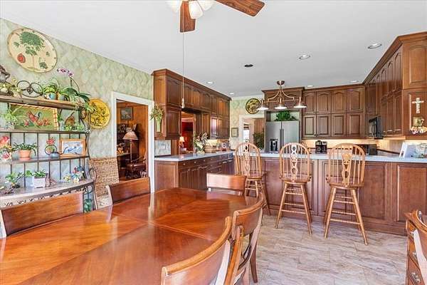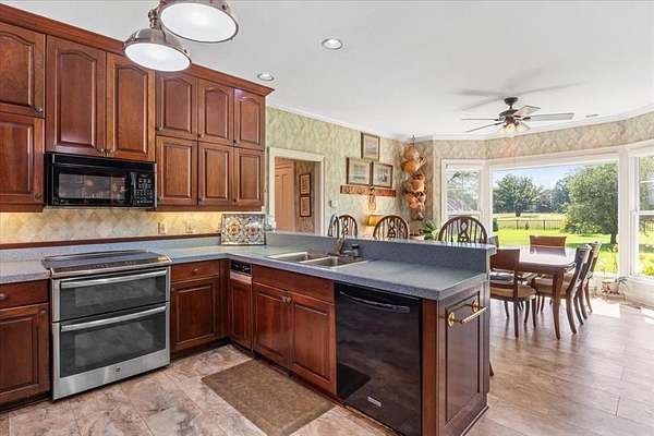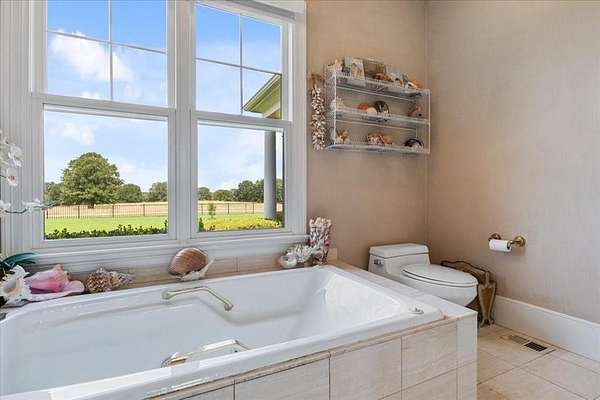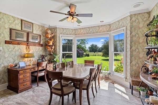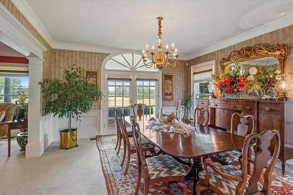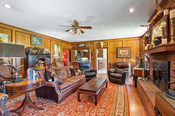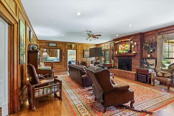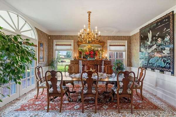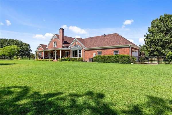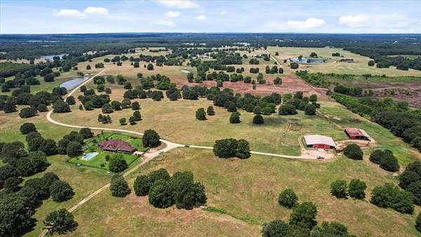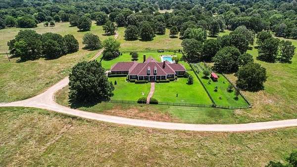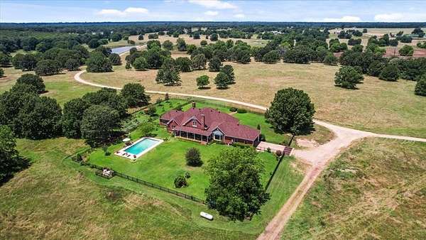 Nestled on one of the highest hilltops in Paris, Texas, this exceptional ranch spans 375 acres and features a meticulously crafted brick home. The property includes two barns, working pens with pipe fencing, and pristine pastures, perfect for maintaining livestock year-round. The land boasts large trees, multiple year-round stock tanks, and ample grass to sustain your livestock through winter. The spacious 5 to 6-bedroom home offers grand rooms with crown molding, elegant floors, and expansive porches both front and back, ideal for relaxation or entertaining. A large swimming pool enhances the home's appeal, making it perfect for a large family or hosting guests. For those seeking seclusion and a blend of luxury and functionality, this ranch is an unparalleled opportunity.