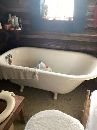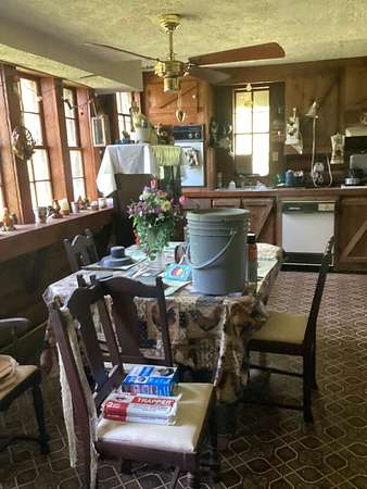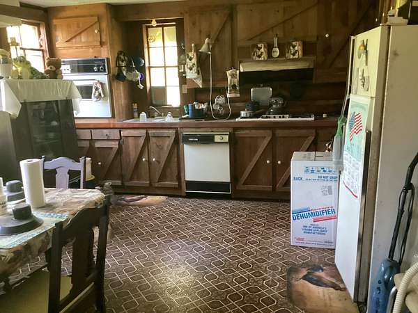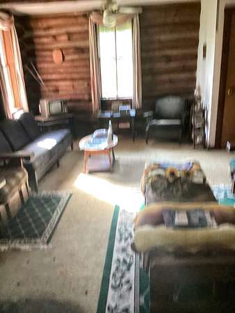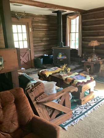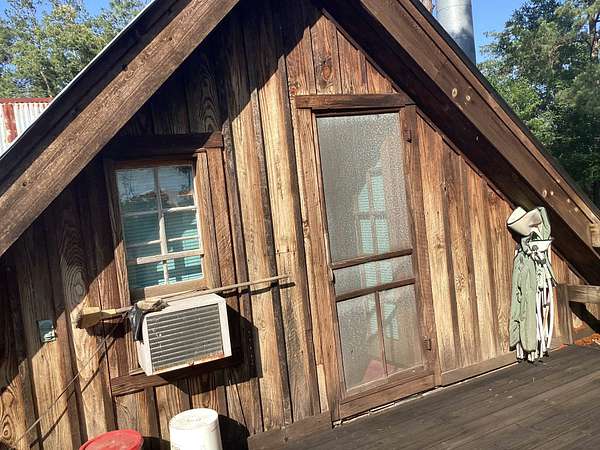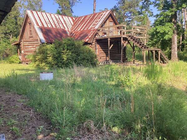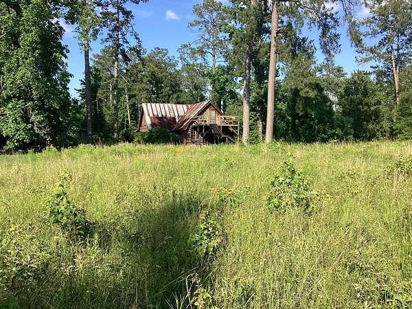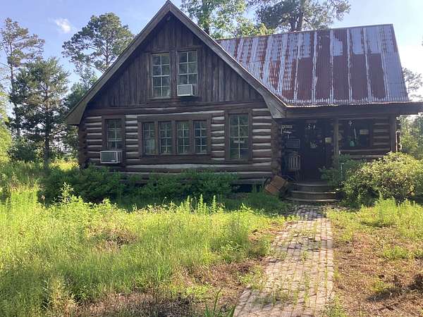 An authentic log cabin built with logs from the site is two stories on piers, has 1,596 sq. ft. living, 3 bed, 2 bath, window a/c units. Log cabin was built in 1978 and never flooded.