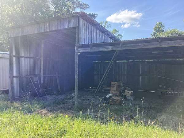 The house, shop, log cabin sustained damages from the recent hurricanes and house from flooding and are priced with that considered for sale as is. Other structures on the property are an open face pole barn measuring approx. 55' x 29' and a smaller barn/pump shelter measuring 23' x 33' making a total of five separate structures.