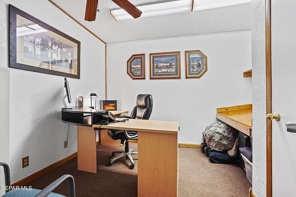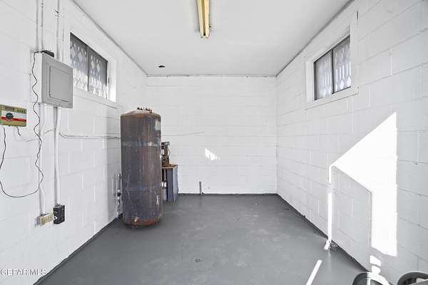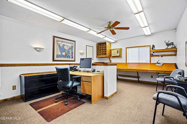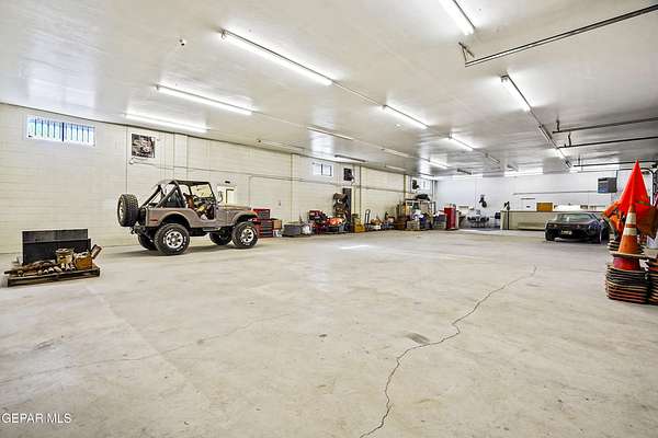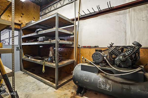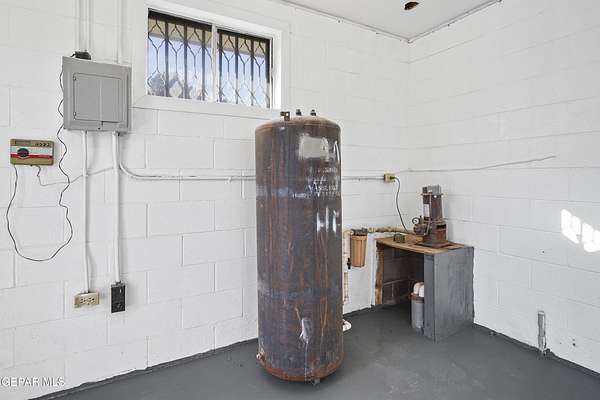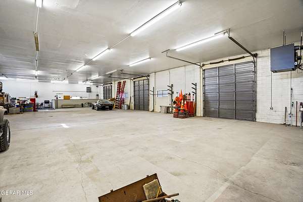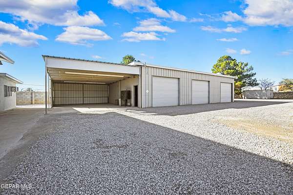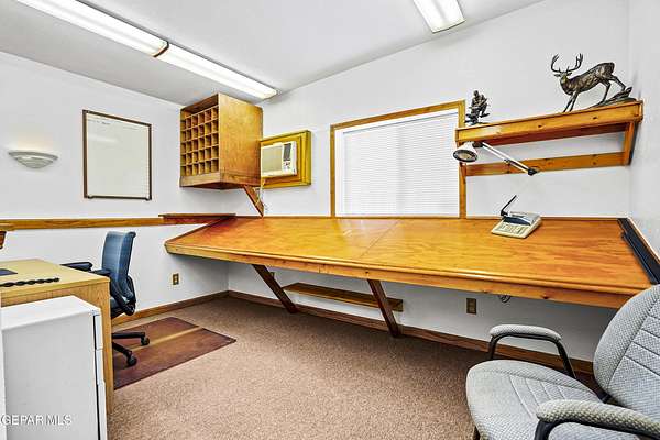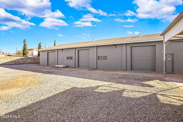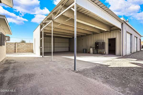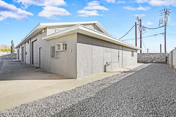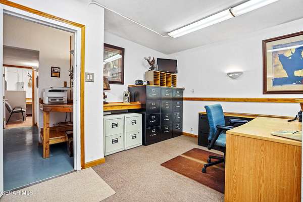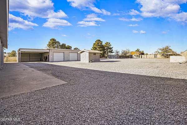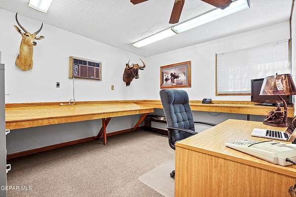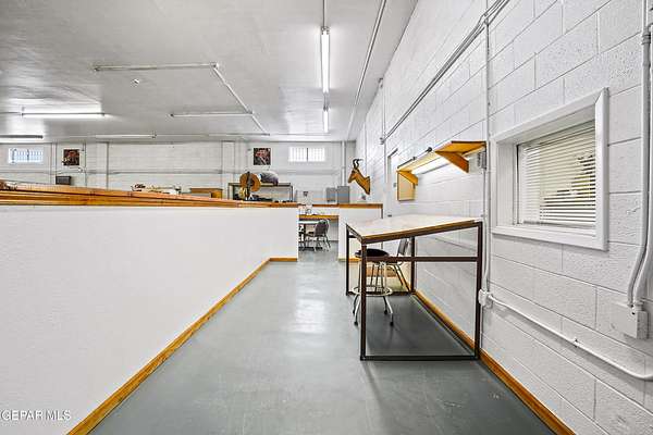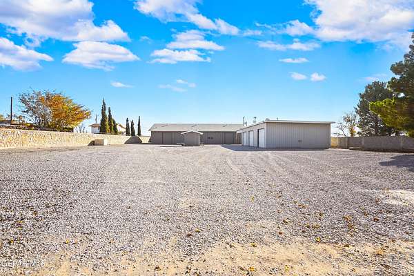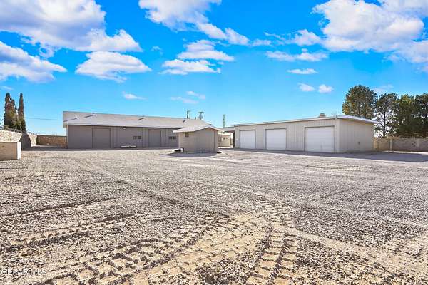 Perfect commercial shop space in move-in condition on .81 acre lot (35,110 Sq. Ft.) for ample equipment and truck parking inside secure custom rock wall with secure metal gate. Building A is 4,660 Sq Ft with a professional office space plus 3 work bays, 3 private carpeted offices with ceiling fans plus storage area, 2 half baths with pedestal sinks, break area, drafting area, concrete & tile flooring, 2 Dayton heating units, and 3 Daytona fans. Building B is 1,881 Sq Ft with 660 Sq Ft carport, 3 bays, and extra storage/tool room. Bonus fenced/cinderblock storage are in back of Building A. Small cinderblock building with pitched shingle roof used for water well system/storage.