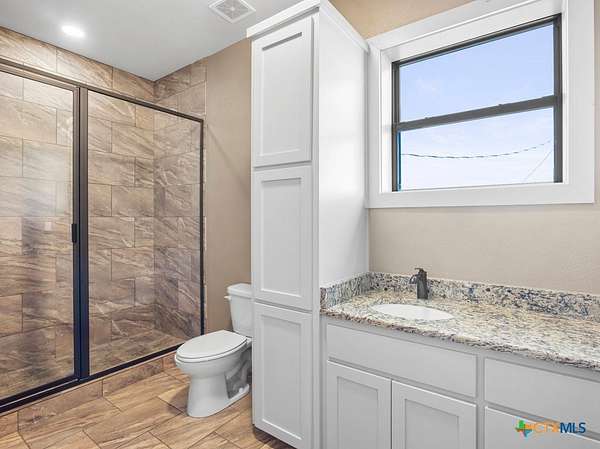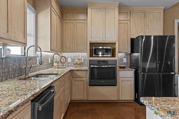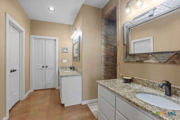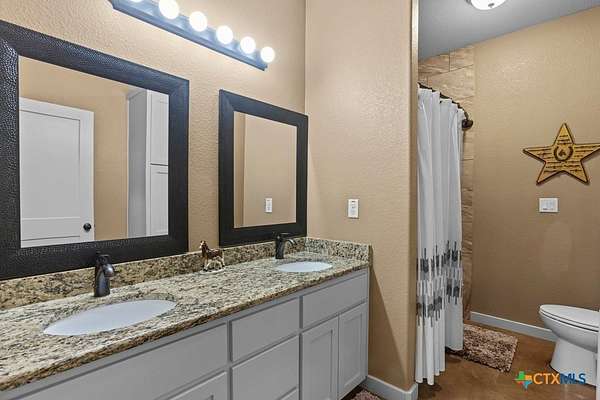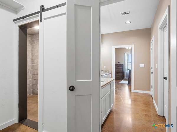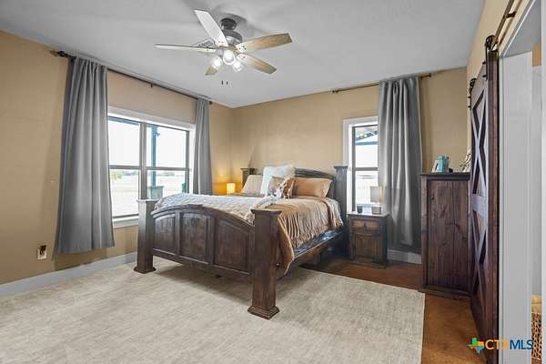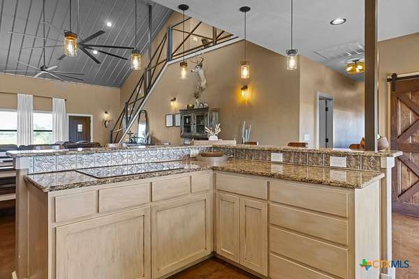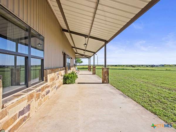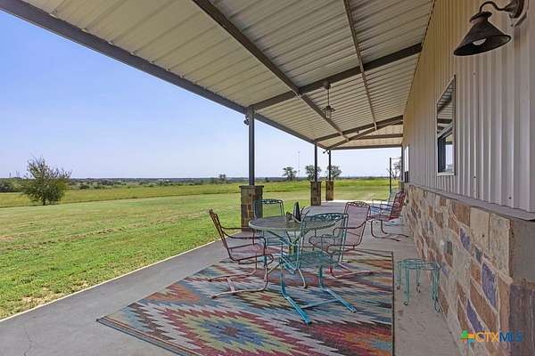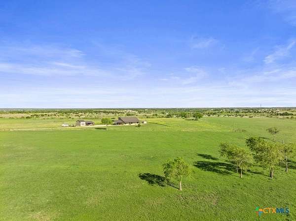 This stunning 5-bedroom, 4.5-bathroom home offers an open-concept floor plan that seamlessly connects the kitchen, dining, and living areas. Highlights include soaring cathedral ceilings, an expansive walk-in shower, open loft spaces, a built-in safe room, and beautiful ponderosa pine flooring upstairs. Ample storage is available throughout with multiple large closets and additional attic decking. Enjoy the outdoors from the spacious wraparound covered porch, or take advantage of the 21+/- acres perfectly suited for livestock and horses. The well-designed livestock barn is spray-foam insulated and features hot water, a built-in sink with cabinetry, and convenient roll-up doors. With 25x30 and 40x15 rooms make it ideal for ag projects of all kinds. The front of the property is cross-fenced with loafing sheds, making it an excellent setup for horses. Conveniently located to IH35 and Salado ISD.