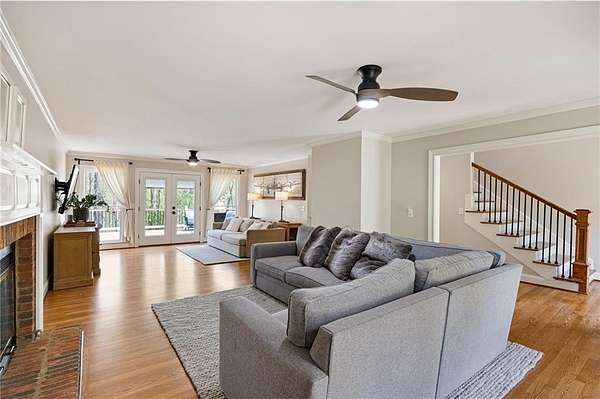 Tucked away on a quiet cul-de-sac in the highly sought-after Crabapple Springs community, this exceptional property at 502 Riverview Ct., Woodstock, GA offers the perfect blend of privacy, luxury, and natural beauty. Set on a sprawling 2.1-acre estate lot, this home provides a peaceful retreat from the pace of everyday life while remaining conveniently close to it all-just 15-20 minutes from downtown Alpharetta, Milton, Roswell, Crabapple, Canton, and downtown Woodstock, with easy access to scenic hiking and biking trails. The home's timeless brick and cement siding exterior is complemented by a desirable two car side-entry garage, plus an additional third garage bay and a separate storage shed-ideal for lawn equipment and outdoor essentials. An underground pet fence spans approximately 1.25 acres. The expansive property offers plenty of room for gardening, recreation, or simply enjoying the outdoors. Inside, the thoughtfully designed layout balances comfort and functionality. Rich hardwood floors flow throughout the main level, where a sun-drenched kitchen with a cozy breakfast area serves as the heart of the home. The main-level primary suite provides convenience and privacy, while a flexible dining room or office, along with a dedicated laundry room, supports effortless daily living. French doors extend the living space onto a large back deck, perfect for indoor-outdoor entertaining. Upstairs, you'll find three spacious, oversized bedrooms and a full bath, offering ample room for family or guests. The terrace-level basement adds even more versatility, with space ideal for a home gym, media room, and additional storage. Step outside to your own private sanctuary-an expansive deck overlooking a serene backyard where deer and wild turkeys are frequent visitors. Whether you're enjoying morning coffee, hosting gatherings around the fire pit, or unwinding in nature, this outdoor setting is truly special. Additional highlights include a new roof and an exceptionally low $66 annual HOA fee. Located in the top-rated Cherokee County School District, this home offers a rare combination of seclusion, space, and convenience. If you're seeking refined living in a peaceful, private setting, this remarkable property is an opportunity not to be missed.