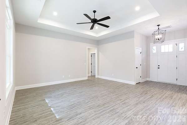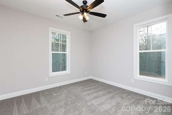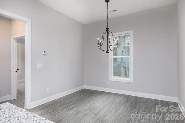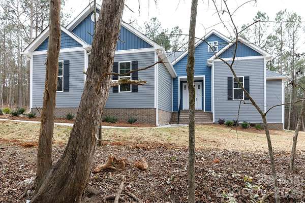 NO HOA and plenty of privacy!! This newly constructed home sits on 2.6+/- acres and is surrounded by hardwood trees and like-in-kind properties. The interior of the home features a split-bedroom open floorplan with a covered front and rear porch and LTV flooring throughout the main living area. The open kitchen includes a sit-in dining area overlooking the yard, kitchen island with breakfast bar, stove with chimney-style vent hood and a farmhouse style sink. The large family room with a tray ceiling offers plenty of natural light and has a door leading to the covered back porch. The primary bedroom features a trey ceiling with fan and carpet flooring. The primary bath includes a double sink, large tiled walk-in shower and tile floors. Located off the primary bath is an oversized walk-in closet that is sure to provide ample space for clothing and storage. The half bath and laundry are located off the kitchen. The home sits off a private lane shared by 3 homes and with all the trees and privacy this is definatley a nature lovers paradise!