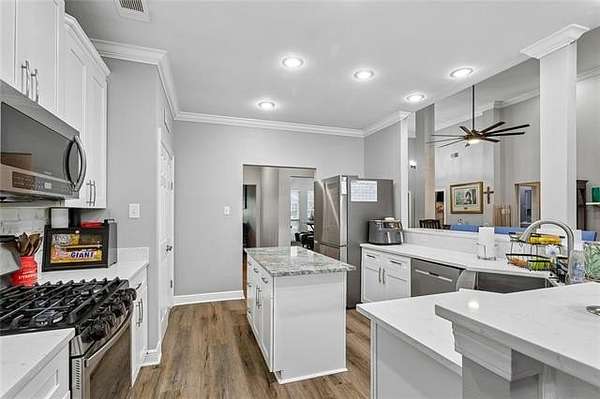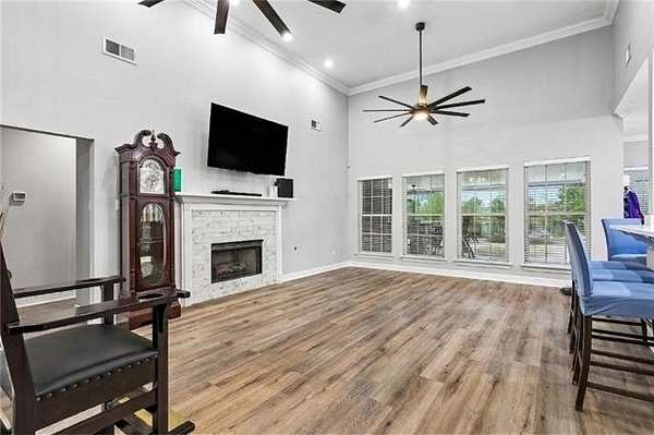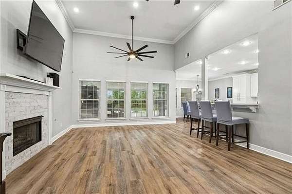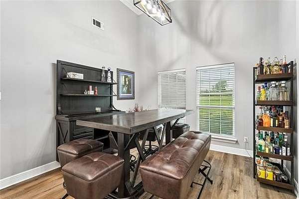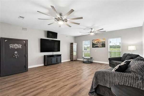 Beautifully situated on 2.7 acres in the Highlands, this inviting home offers the feel of subdivision living with a quiet country setting. The open floor plan creates a smooth flow through the main living areas, highlighted by high ceilings, inset lighting, and durable hard surface flooring throughout with no carpet. The living area connects easily to the dining space, providing a comfortable layout for everyday living and gatherings.
