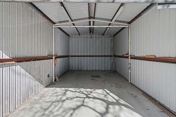 The land is fully fenced and cross-fenced, with an electric gated entrance, multiple well-maintained pastures, and a private well dedicated to livestock. Additional improvements include a small barn with tack room, RV garage, covered equipment parking, loafing sheds in the south pasture, and numerous water faucets throughout the property for easy livestock and land management.