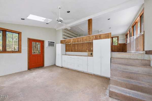 - Bathtub/Shower Combination, Beamed Ceilings, Bookcases, Built-In Features, Ceiling Fan(s), Double Vanity, Eat-In Kitchen, Entrance Foyer, High Speed Internet, Kitchen Island, Living/Dining Room Combination, Natural Woodwork, Pantry, Primary Downstairs, Recessed Lighting, Track Lighting, Vaulted Ceiling(s), Walk-In Closet(s), Walk-In Shower