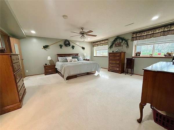 Replacement glass in the older portion of the home was completed in 2022. The walk-out basement features an oversized bedroom with a jacuzzi tub and generous walk-in closet, opening to a serene backyard surrounded by prime hunting land. New windows were installed in the basement bedroom in 2021. New carpet in the sitting room in 2023. All gutters have screens on.