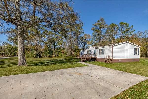 Welcome to your new home! Nestled on a spacious 1.89-acre lot, this meticulously maintained three-bedroom, two-bath single wide mobile home offers a perfect blend of comfort and convenience. The oversized kitchen is a chef's delight, complete with all appliances, ready for your culinary adventures. The split floor plan ensures privacy, featuring a master suite with a walk-in closet, double vanities, a garden tub, and a separate shower. Enjoy the convenience of a dedicated laundry room, as well as both front and back porches for relaxing outdoor moments. Septic Tank & Well. NO HOA or Flood Zone. Great investment property or first time home. A copy of a clear termite report is available by request!