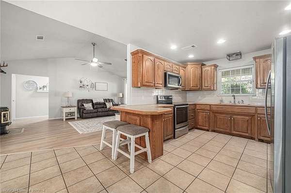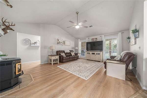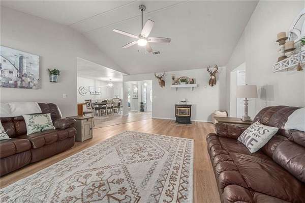 Discover country living at it's finest with this beautifully renovated home perched atop a hill overlooking panoramic mountain views, rolling hills, and tranquil stocked fishing pond. Spanning 8.39 acres, this remarkable property also includes a 15' easement to the National Forest. Perfect for hunting, hiking, or exploring the great outdoors. Enjoy privacy, open space, and breathtaking scenery from every angle. Completely redone in 2022, this home features a new CH/A unit, LifeProof vinyl plank floring, and architectural shingle roof, and all new Whirlpool stainless steel appliances, including a microwave vent hood. The interior shines with new paint throughout, updated ceiling fans, modern cabinet hardware, new door knobs, and hinges, stylish light fixtures, and window blinds. The spacious living room showcases a cathedral ceiling and a pellet stove with thermostat- offering both charm and efficiency for cozy winter nights. Step outside to find multiple outbuildings designed for convenience and function, including a detached carport, storage building, workshop, loafing shed, and a Tornado King storm shelter for peace of mind. Gutters were added in 2022, and a hunting cabin sits near the back of the property along the easement. The property offers everything you could ask for in a rural escape-modern upgrades, acreage (fenced with 3 gates), natural beauty, and practical amenities. Whether you're seeking a full-time homestead, recreational getaway, or simply a peaceful place to relax and enjoy scenic countryside, this home delivers the best of both comfort and adventure. This home is agent owned.