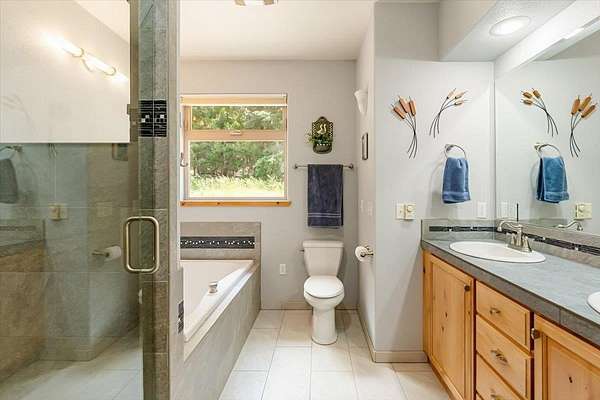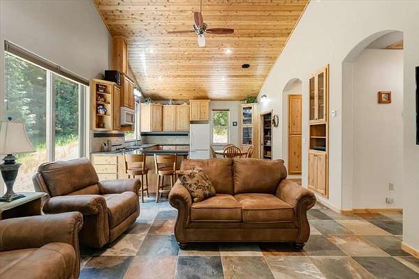 ESCAPE TO THE SERENITY OF HAMMOND RANCH! Thoughtfully designed with quality and self-sufficiency in mind, this home on 5 acres is full of special touches and modern comforts. A creek winds through the land, and breathtaking views of Mt Shasta and the meadow await from the High Meadow entrance—setting the scene for a property that blends natural beauty with thoughtful design. Inside, enjoy radiant heated floors powered by wood or electricity, a cozy pellet stove, and toe-kick heaters in the bathrooms. The kitchen features granite countertops, alder cabinetry, and a convenient breakfast bar. The bathrooms showcase gorgeous custom tile work and a stylish soaking tub. Architectural features such as arched entryways, a vaulted ceiling, and bay window seating add charm and elegance. Outdoor amenities include a 30 x 40 shop with water, septic, electric, and satellite hookups—perfectly prepped for future ADU conversion! Plus, a wood-fired boiler shed, off-grid utilities shed, 2500 gal covered water tank, access from both Elderberry Dr and High Meadow, and strategically placed French drains and culverts throughout. Simply too many features to list —Contact your agent for the full details!