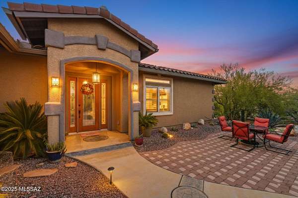 Tucked at the end of a winding private road, this desert hideaway offers peace, privacy, and quick access to everything. A welcoming courtyard leads through a formal entry hall and into a spacious great room ideal for relaxing or entertaining. Just off the formal dining area is a chef's kitchen with granite counters, abundant cabinets, deep sinks, a 5-burner cooktop, double ovens, and a huge walk-in pantry. The generous primary suite features desert views and a spa-like bath with double vessel sinks, a whirlpool tub, and a glass-block shower. Outside, enjoy fruit trees, a hot tub, and a rooftop deck with sweeping mountain and valley views. A private guest casita with full bath and garage makes hosting effortless. Come experience this in-the-city desert retreat!