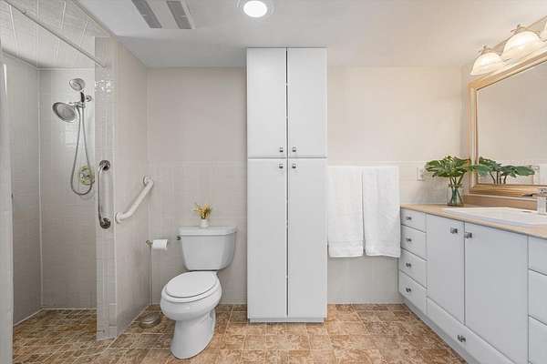 - Accessibility Features, Attic Ventilator, Ceiling Fans(s), Eat-In Kitchen, Living Room/Dining Room Combo, Primary Bedroom Main Floor, Solid Surface Counters, Solid Wood Cabinets, Walk-In Closet(s)