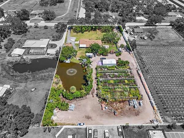 Under contract-accepting backup offers. Multigenerational homestead- a rare find! Offered for the first time in 25 years, with OWNER FINANCING AVAILABLE. This versatile property is set on 2.55 of in-town with nearly 10,000 sqft of greenhouses. This property delivers unmatched flexibility and opportunity with a separate entrance to the greenhouses, it's the perfect work from home business or income producing space. The main home offers 2 bedrooms, 2 full baths, and a spacious den. The attached ADA-accessible apartment features a private entrance, full kitchen, and 1 bedroom - perfect for in-laws or long-term guests. In addition to the 2 car garage, the detached garage is the perfect workshop, art studio, or hobby room. Recent upgrades bring peace of mind: Roof replaced in 2022, new 200 amp electric panel installed in 2022, and new drain field in 2023. In-law apartment has a separate mini-split A/C unit that was just replaced. This one-of-a-kind homestead combines the serenity of acreage living with the convenience of being West of the interstate near modern conveniences. The expansive grounds are gated and surrounded by 6ft privacy fence and mature oak trees with a well for irrigation. On the South side of the home you will find a pole barn and gardening area for storage or could be utilized as a horse stall. The pond is stocked with tilapia, blue gill and bass ready for a catching experience under the serene covered pergola. Whether you dream of sustainable living, rental income, or space for the whole family, this property is ready to support your vision.