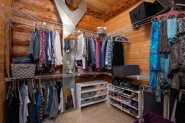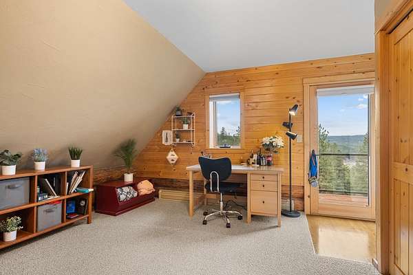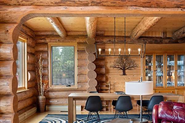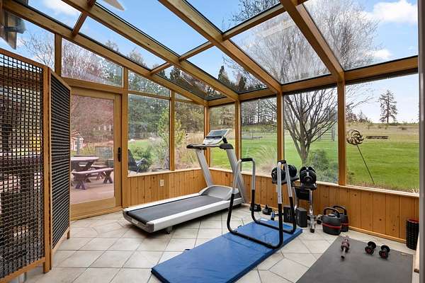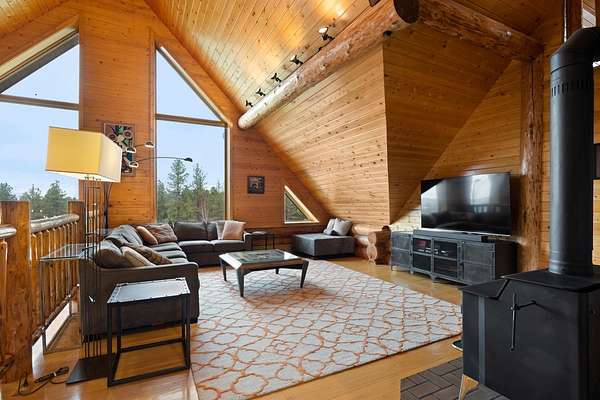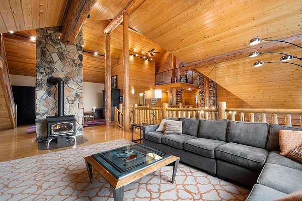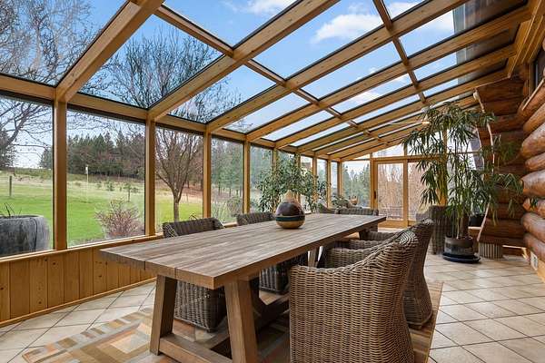 Old Faithfull Inn Yellowstone - But It's Spokane! Massive Log Swedish Cope design home with soaring ceilings. Enjoy the privacy like a national park. Wood plank flooring, huge windows frame the views. 2026 fresh interior paint, new bathroom, extensive new lighting, new roof (2020) and refreshed exterior stained logs makes this 5 bedroom, 3 bath, 3 family room plus office & mediation room home move in ready. Just off the kitchen is a huge laundry, massive pantry and enjoy the sun room off the south side of the home just off the kitchen for dining, relaxing or fitness. Warm up with the pellet and wood burning stoves with stone backdrop. 3 car large garage with upper level for ample storage. 30x40 Barn/Shop w/hay loft, chicken coop 2 shelters, big pasture, new pond with reservoir is perfect for all your animals. Only 10 min to Safeway, Luna, Starbucks & Gyms, 15 Min to Trader Joes & 20 Min. to Downtown Spokane.