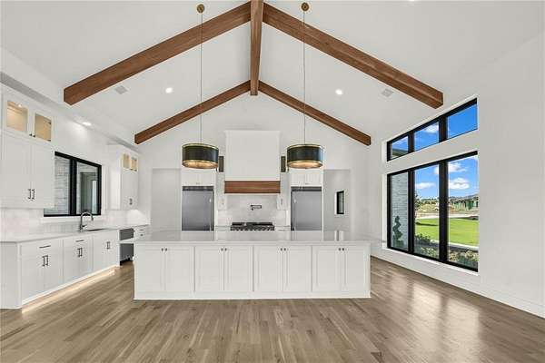 - Built-In Features, Built-In Wine Cooler, Cable TV Available, Chandelier, Decorative Lighting, Double Vanity, Dry Bar, Eat-In Kitchen, Flat Screen Wiring, Granite Counters, High Speed Internet Available, Kitchen Island, Natural Woodwork, Open Floorplan, Pantry, Sound System Wiring, Walk-In Closet(s)
