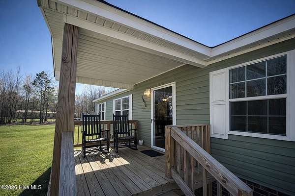 spacious 2023 double wide manufactured home awaits. Offering 3 bedrooms, 2 bathrooms, and 1,528 sq. ft. of like-new living space, this property blends comfort, style, and country charm. Step inside to an open floor plan where the living room, dining, and kitchen flow seamlessly together--perfect for entertaining and everyday living. The kitchen features a large pantry with a stylish sliding door, plenty of cabinetry, and room to make meal prep a breeze. The primary suite is your private retreat with a walk-in closet, double-sink vanity, and a walk-in shower. Two additional bedrooms and a full bath provide comfortable accommodations for family or guests. Outdoor living is a highlight here! Enjoy morning coffee/tea on the front porch built perfectly for rocking chairs or host gatherings on the expansive back porch--perfect for barbeques and celebrations. This home offers the best of both worlds--peaceful country living with modern amenities.