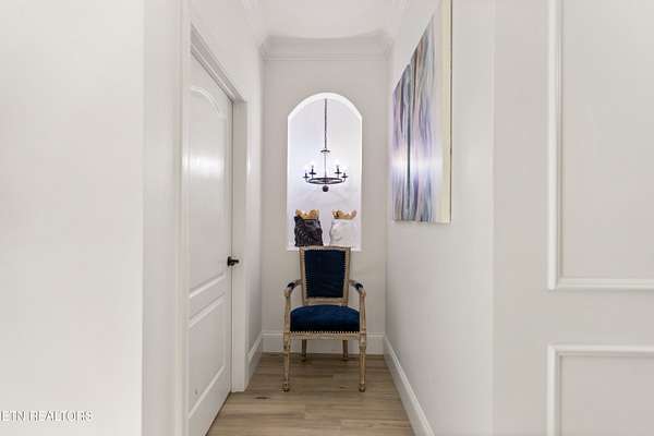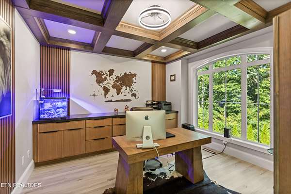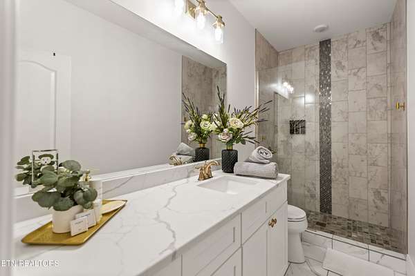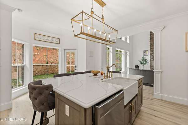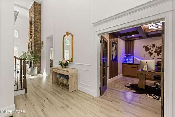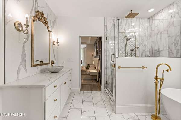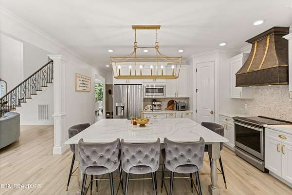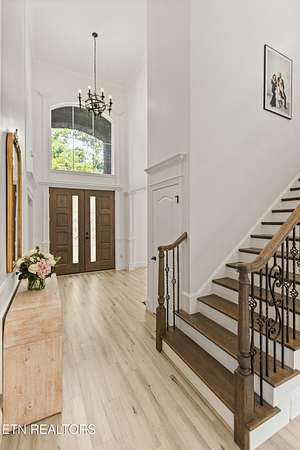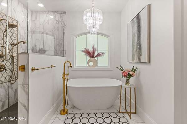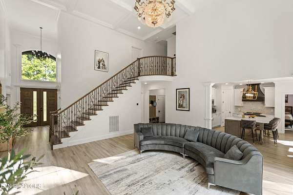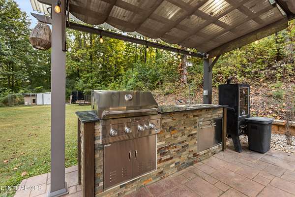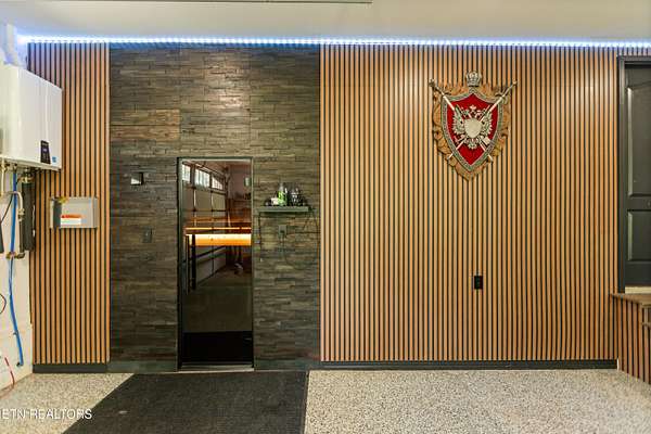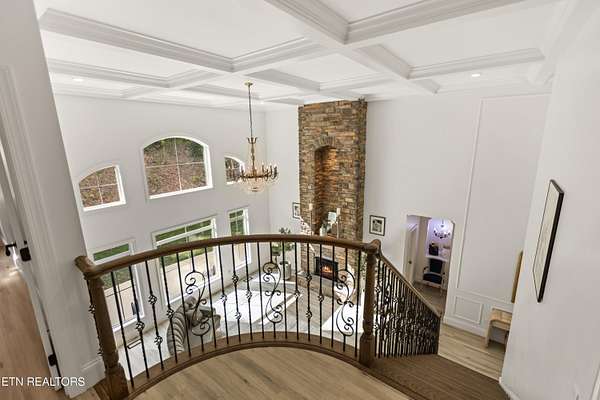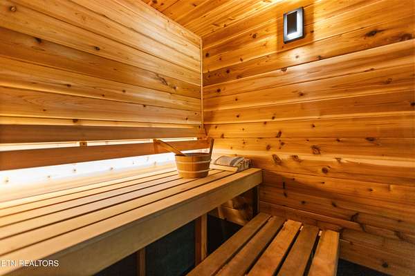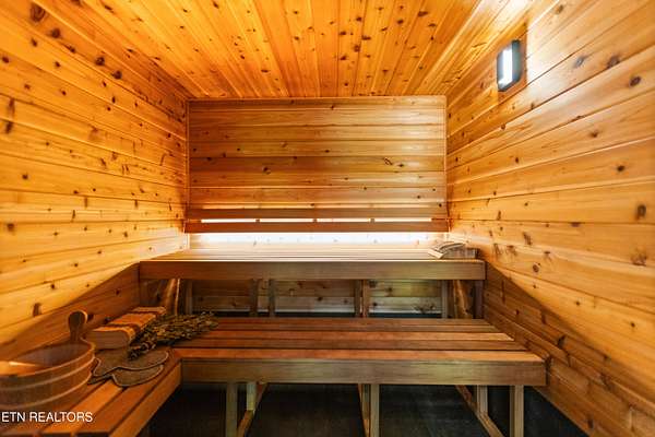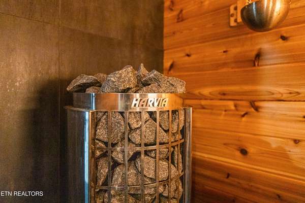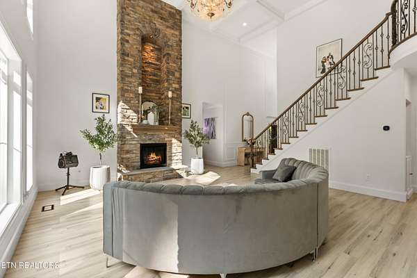 Experience unmatched privacy and luxury on over 2 acres in this one-of-a-kind estate, perfectly situated in mature trees for 360 degree seclusion yet unparalleled convenience--just a couple minutes from Sam's Club, Walmart, Target, Aldi, I-40 and I-640 Highways, 10 min to Downtown and offering the closest access Knoxville could provide to Sevierville and Gatlinburg that makes LOCATION OF THIS HOUSE UNIQUE AND INCOMPARABLE. This excellently maintained 2021 year build home feels like brand new, while benefiting from established, beautifully manicured landscaping and an abundance of decorative trees lining the driveway--creating the feeling of arriving at a private enchanted estate. The use of natural stone and brick creates a timeless, castle-like aesthetic, while steep roofs and ornate detailing evoke a storybook chateau. Enlarge windows illuminate the home, showcasing customized, designer-selected details throughout every corner of this remarkable property. A formal dining room with city views provides an elegant setting for hosting memorable dinners, where evening lights and scenic vistas create a refined yet inviting atmosphere. The main-level primary suite is a true hotel-style retreat, featuring dual his-and-hers closets, a spa-like bath, its own private fireplace, and a dedicated relaxation area with a massage chair that transfers to the new owner, creating an exceptional space to unwind in comfort and privacy. A separate, custom-built indoor wet and dry sauna elevates the wellness experience, featuring a powerful Harvia electric heater, Italian tile, and authentic wood imported from Finland--a rare and thoughtfully executed luxury feature. The chef's kitchen is equipped with GE Profile appliances, an oversized island, and a gas connection option for a preferred range, designed for both everyday living and entertaining. The main living space is anchored by a dramatic 20-foot tall natural stone gas fireplace, while just beyond, a covered outdoor patio extends the living area outdoors, featuring an outdoor kitchen with an integrated KitchenAid grill, sink, and ceiling fan with lighting--perfect for year-round enjoyment. From seasonal hill sunrises to city lights at dusk, every detail invites you to slow down and savor the moment. This estate blends privacy, high-end craftsmanship, and livable elegance in one of the most convenient location of East Tennessee. Enjoy the freedom to live your lifestyle your way--complete with an on-site EV charger for both electric vehicles and RVs, and the rare benefit of no HOA and no restrictions. Schedule your private showing today and experience why this Skyview gem offers the best and unique location and lifestyle in the area with no competitors on the market. Buyers to verify all info*