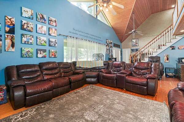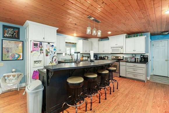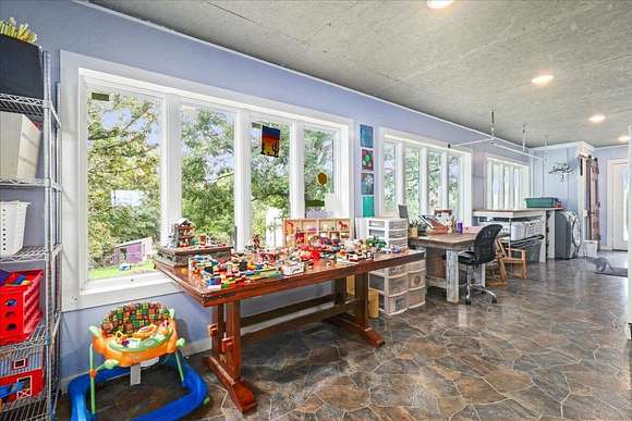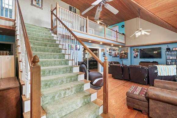 Welcome to this breathtaking custom home nestled on over 11 m/l+= picturesque acres, offering both privacy and limitless possibilities for your growing family. With 7 spacious bedrooms, including 2 on the main level, 2 on the upper level, and 3 in the walk-out basement, there's no shortage of room for everyone. The open living room features soaring ceilings and a balcony that overlooks the expansive space below, providing a sense of grandeur and connection to the home's heart. The lower level is an entertainer's dream, with a second laundry area and versatile space that could easily be transformed into an in-law suite or separate living quarters. Simply add a kitchenette for the ultimate private living arrangement. Enjoy evenings on the back deck or gather around the large firepit area out front for unforgettable family moments. The property also boasts a newer roof, a large shop with former living quarters that can be restored, and a chicken coop, all ready for your personal touch. With an all-electric system complemented by an outdoor wood furnace for efficient heating, this home is as sustainable as it is stunning. Don't miss out on this rare find -- it's the perfect place to build lasting memories and create the life you've always dreamed of! More land could be available for purchase with this one!