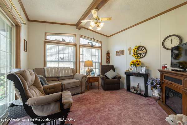 - Ceiling Fan(s), Crown Molding, High Ceilings, Vaulted Ceiling(s)