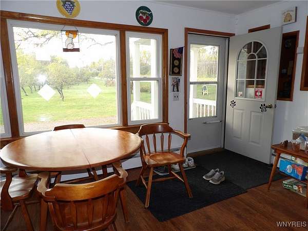 VALUE RANGE PRICING. Seller will consider offers between $250,000 and $300,000.Take a look at this truly unique property! This charming two-story home features four bedrooms, one full bath, a separate laundry room, and an open eat-in kitchen with plenty of cupboard and counter space. The spacious living room offers a beautiful working farm stone wood-burning fireplace, creating a cozy and inviting atmosphere. Step outside to a fenced backyard, perfect for relaxing or entertaining. The property includes a 9.5-acre lot with a detached barn, a detached one-car garage, apple groves, and a one-acre stocked pond. Currently operated as an active organic apple orchard, the property also features a couple of honey bee hives-a wonderful opportunity for anyone interested in homesteading or sustainable living. Don't miss out on this rare find - a peaceful country retreat with endless possibilities!