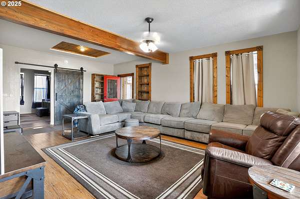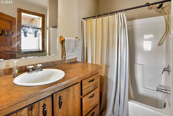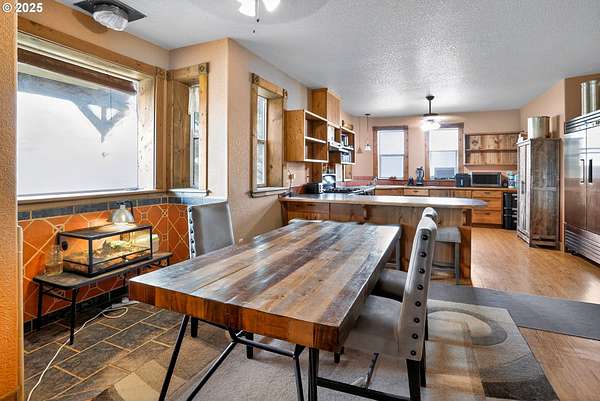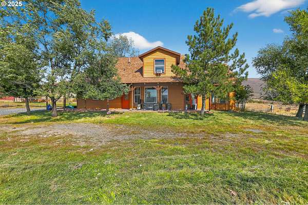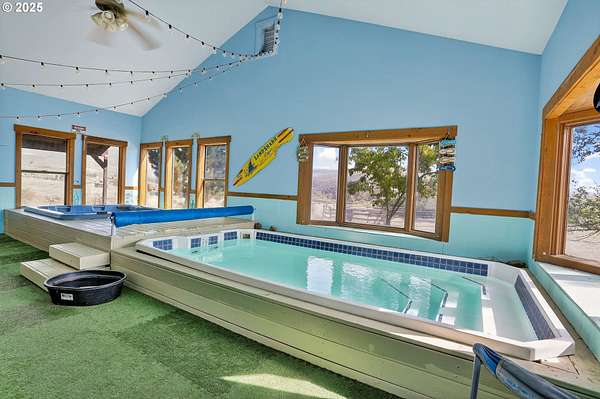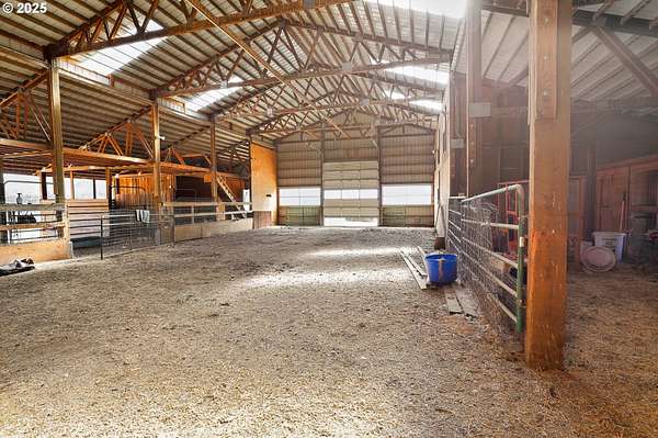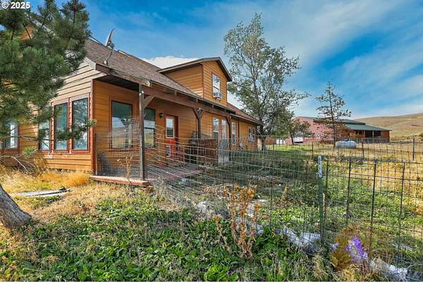 Discover your dream country estate in this 2005 custom-built farmhouse on 10.29 private, level acres. Spanning approximately 2,480 sq. ft., this property offers breathtaking mountain and valley views, creating a turnkey sanctuary for equestrians, hobby farmers, or anyone seeking tranquility with exceptional amenities.The heart of this 4-bedroom, 2.5-bath home is the spacious kitchen, featuring beautiful hickory cabinets, a pantry, and an open layout perfect for entertaining. High vaulted ceilings enhance the sense of space and light throughout the main level. The convenient main-floor primary suite acts as a private retreat with its walk-in closet and accessible walk-in shower. A standout feature is the incredible indoor recreation room, complete with a heated lap pool and spa for year-round enjoyment. Built with superior R-50 foam/concrete walls and warmed by an efficient hydronic radiant floor heating system (plus a cozy wood stove), this home offers unparalleled comfort and energy savings. Outside, the property is fully equipped for the equestrian or hobby farm enthusiast. A massive 35'x72' barn includes a riding arena, tack room, and an attached workshop. The grounds are fully fenced and cross-fenced, offering excellent pasture, a pump house with storage, a poultry coop, and ample RV/boat parking. The serene landscape is highlighted by three seasonal ponds, one of which is spring-fed, ensuring a picturesque setting through the seasons.Located just 24 miles from Baker City and 35 from La Grande, you're a short drive from the recreational havens of the Wallowa-Whitman mountains and the Eagle Cap Wilderness. With high-speed fiber internet available, you can seamlessly work from home without sacrificing the peace of rural Oregon. This isn't just a home; it's a complete lifestyle package ready for you to enjoy.