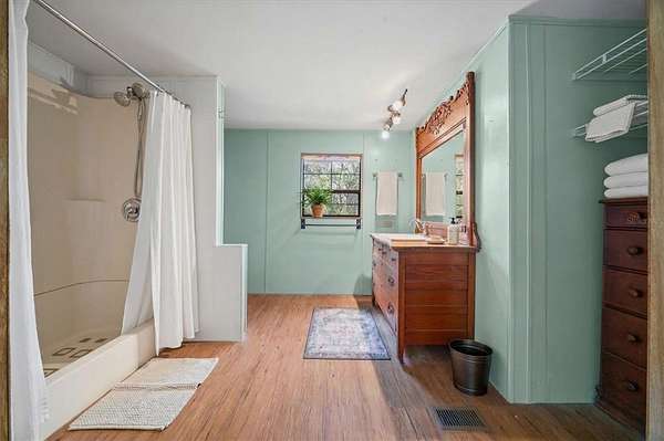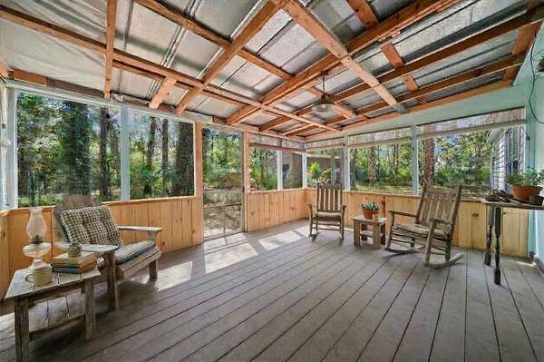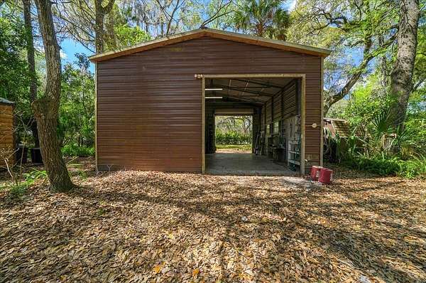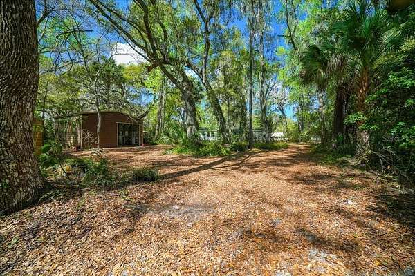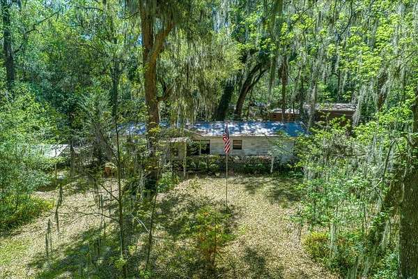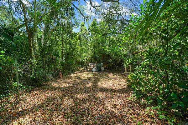 One or more photo(s) has been virtually staged. You’ll feel like you are living in your own private nature preserve. This 3-acre A1-zoned property is designed for those who want LAND to grow, cultivate, build, store, or hide-away from the world. A 25×25 hurricane-rated metal building on a slab with roll-up bay doors and 220V power is ready for serious projects and equipment while the medium sized 12×24 shed is set up as a workshop. Additional storage structures are tucked into a fenced clearing beyond the backyard—ready for tools, toys, animals, gardening, or whatever plans you have in mind. Nearly two-thirds of the land remains beautifully wooded with walking trails winding through the trees, creating a peaceful place to explore, unwind, and truly get lost in nature. Mature landscaping, flowing plants, fruit trees, and 300 year old oak trees are scattered throughout the property, while open areas provide space for gardening, animals, outdoor hobbies, or equipment storage. A dedicated area for mulching has already been created. The comfortable 3-bedroom, 2-bath home has been carefully maintained with detailed service records for major systems, giving buyers confidence in its upkeep. Inside you’ll find a split floor plan for privacy, a fireplace to keep things cozy, and a washer and dryer in the laundry room. Outside, the screened back porch provides a quiet place to relax and enjoy the mature landscaping and quiet. Additional features include a water treatment system, a fully fenced and cross fenced lot, and existing elevation certificates and a survey ready for the buyer.