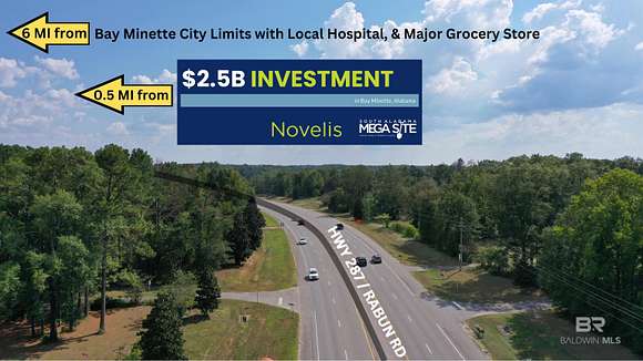 Bay Minette, AL- 1 Acre Less than a Mile from I-65, Novelis and Mega Site, Fast Growth Area, High Traffic- This commercial lot offers excellent visibility & access for developers, investors, and national brands seeking high-traffic commercial property near I-65. With 10,637 AADT on Rabun Rd/Hwy 287 (up 6.8% in one year) and 21,595 daily vehicles on I-65 (up 3.4%), this location provides strong visibility & consistent exposure for retail, hotel, restaurant, etc. Surrounding Developments: *25 mins from Baldwin Prep Academy. *New 116-Site RV Park near the Mega Site to serve industrial workers, travelers & visitors. *Old Towne Commons PUD (413 +- Acres): Approved mixed-use project with Phase 1 (77 single-family lots) & Phase 2 (115 lots) already platted; full plan includes 764 single-family lots, 392 multi-family units & 47 +- acres of commercial space. *Hilton-Branded Hotel & 2 Restaurants: expanding lodging & dining options. *"31 Commons" Retail & Office Center: Planned along U.S. 31 South to add new retail & commercial opportunities. *Big Mike's Steakhouse & Cobblestone Hotel: planned for downtown, driving Bay Minette's revitalization. *Novelis $4.5 Billion Aluminum Plant: Fueling regional industrial & infrastructure growth. Zoning Flexibility & Investment Advantages: Unzoned property allows for restaurant development sites, gas stations, quick-service restaurants (QSRs), convenience stores, multi-family projects, RV parks, or warehouse space. Located in an Opportunity Zone, this property offers significant tax incentives for developers and investors. Additional Features include a single-family home, shop, and detached garage. Proximity to Key Areas: 6 miles to Downtown Bay Minette. 34 miles to Mobile, AL. 58 miles to the Gulf of Mexico. Financing Assistance Available: Eligible for SBA commercial real estate financing for qualified buyers and developers. This strategic location is poised for commercial success and ready for development. Buyer to verify all information.