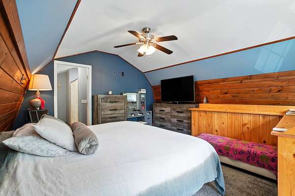 - Ceiling Vaulted, Kitchen Island, Lighting Recessed, Washer/Dryer Hookup, Woodwork Stained