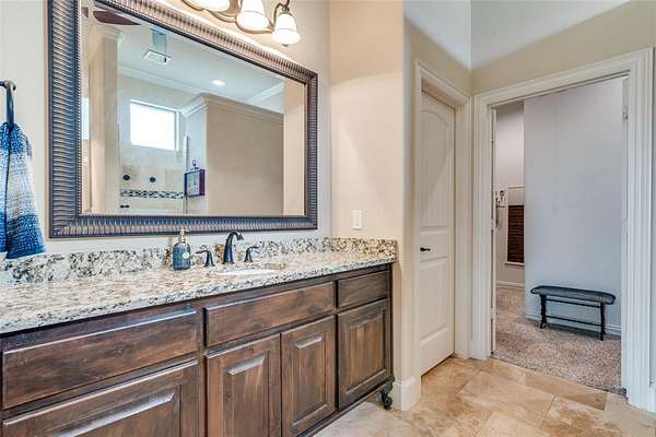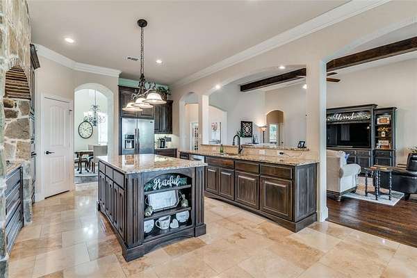 - Built-In Features, Cable TV Available, Cathedral Ceiling(s), Chandelier, Decorative Lighting, Double Vanity, Eat-In Kitchen, Granite Counters, High Speed Internet Available, Kitchen Island, Natural Woodwork, Open Floorplan, Pantry, Smart Home System, Sound System Wiring, Vaulted Ceiling(s), Walk-In Closet(s)