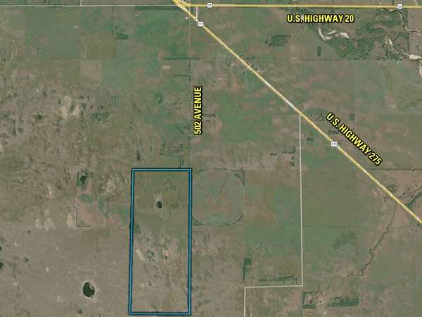 The topography is gently rolling. Much of the property is sub-irrigated, offering the potential for seasonal hay production in addition to grazing while providing drought resilience. Majority soil types include Class IV-VI Valentine-Els complex, Els-Ipage complex, Loup fine sandy loam, and Valentine fine sand with an overall NCCPI rating of 26.8. Access to the property is gained via 502 Avenue off U.S. Highway 275. This area receives approximately 26 inches of rainfall annually.