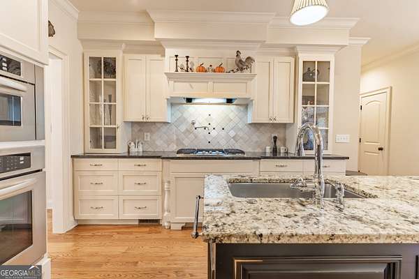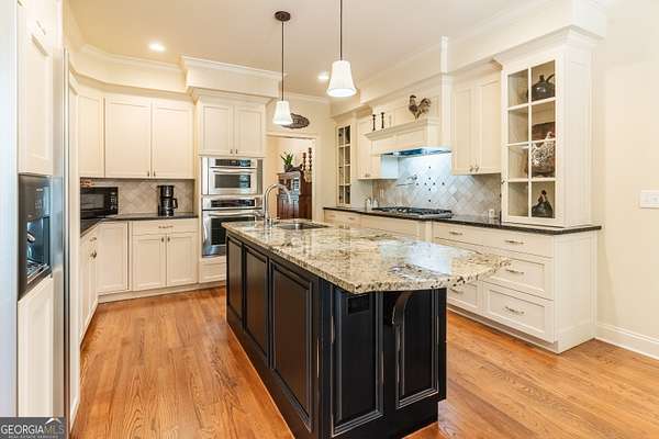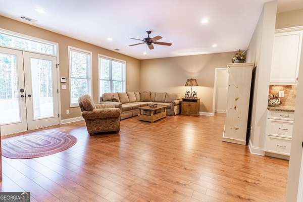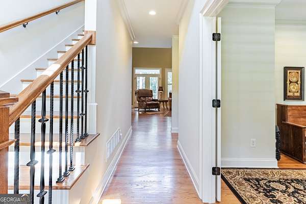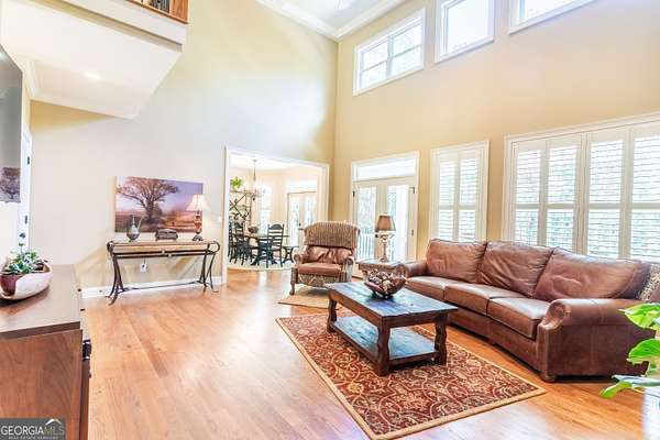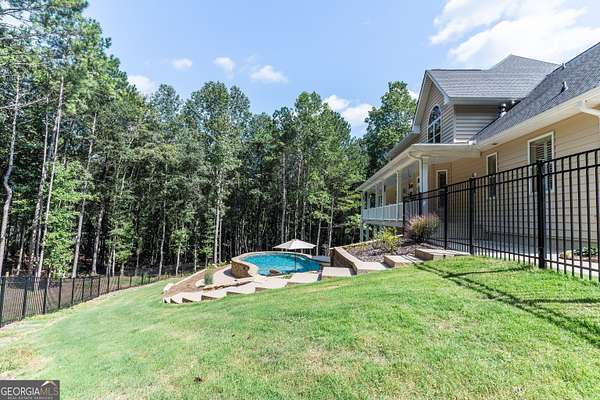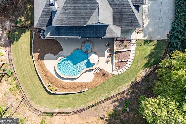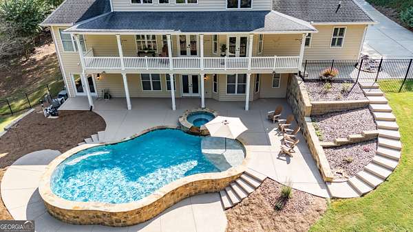 SOUTHERN ELEGANCE MEETS MODERN LUXURY IN ANTRIM GLEN ~ Experience the comfort and warmth of Southern living in this casually elegant CUSTOM BUILT LUXURY HOME on 2.03 private acres in the prestigious estate community of Antrim Glen. A classic rocking-chair front porch welcomes you in, while the backyard unveils your own RESORT-STYLE OASIS complete with a BRAND NEW GUNITE SALT WATER POOL and SPA, NEW POWDER COATED FENCING, and a NEW BRICK RETAINING WALL that beautifully frames the outdoor living space. Inside, HARDWOOD FLOORS flow throughout the main level, enhanced by fresh designer paint, plantation shutters, and custom crown molding. Just off the foyer, an office with French doors overlooks the front porch, and an open dining room-also facing the porch-creates a bright, inviting space for gatherings. The GOURMET CHEF'S KITCHEN features granite countertops, high-end appliances, CUSTOM CABINETRY, and abundant storage-perfect for everyday living or elegant entertaining. Natural light fills every room, especially the vaulted great room with its COFFERED CEILING and WALL OF WINDOWS framing the sparkling pool and wooded backdrop. The main-level primary suite is a sanctuary of its own with his-and-hers closets, a soaking tub, and a rejuvenating STEAM SHOWER. French doors extend the living space onto a peaceful deck overlooking the pool and private woods-ideal for morning coffee as sunlight reflects off the water, or unwinding at the end of the day. Upstairs, three spacious bedrooms with new carpet, two full baths, and a versatility-packed bonus room with new luxury vinyl plank flooring offer room for kids, grandkids, guests, a craft studio, home library, or play space. The terrace level sets this home apart. Thoughtfully designed for MULTIGENERATIONAL LIVING, extended guests, or even income potential, it features a complete PRIVATE LIVING SPACE with a full kitchen, bedroom suite, full bath, half bath for guests, laundry hookup, and DIRECT POOL ACCESS. A huge family room anchors this level and can be closed off with French doors-perfect for movie nights, game days, or a quiet retreat. With abundant storage, two safe rooms, and a setting that balances PEACFUL PRIVACY WITH EVERYDAY CONVENIENCE, this home offers comfort, luxury, and connection in equal measure. If you're seeking a well-built custom home in your own private corner of the world-yet just minutes from Braselton, Jefferson, Chateau Elan, and top-tier conveniences-this is the one. Don't miss the opportunity to experience a meticulously maintained, truly move-in-ready property where luxury, natural light, and resort-style living come together beautifully.