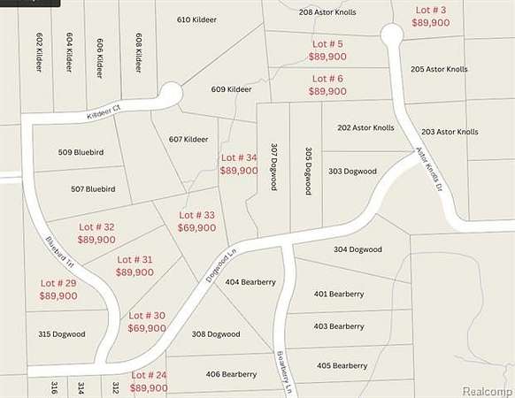 Looking for the perfect building site with rolling hills, wooded lots, plenty of privacy, and beautiful surrounding homes? No need to look any further! Great opportunity to build the house of your dreams on this 2 and 1/2 acre parcel located in the Groveland Knolls subdivision. Paved roads, underground utilities, natural gas, and more. Homes in this neighborhood range in value from the high $400's to well over a million! 10 lots available, in total. Come and pick your favorite one! Minimal building restrictions for a higher end subdivision.
