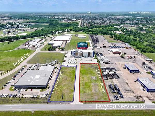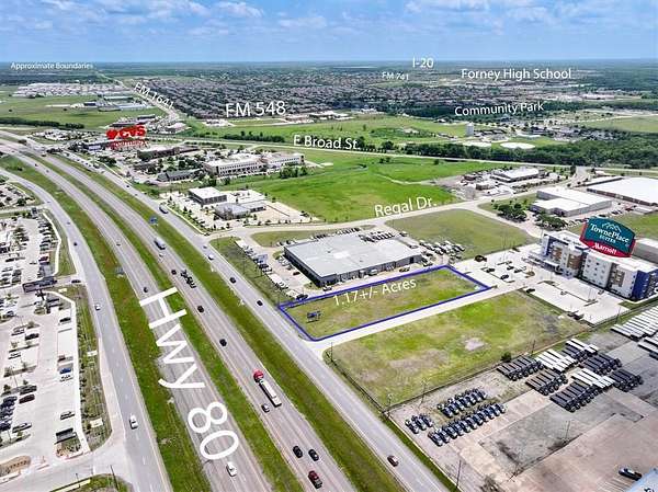 Exceptional 1.17 acre commercial opportunity located directly on the service road of major US Highway 80, just past the exit ramp US Hwy 80 E - 70,000 Annual Average Daily Traffic count--offering outstanding visibility and access. Positioned in the heart of Forney, TX, this site sits prominently in front of the new Marriott Suites Hotel, making it an ideal location for retail, office, or restaurant development. With strong traffic counts, a booming local economy, and excellent frontage, this property is ready to support your next commercial venture. Forney is a rapidly growing suburb East of Dallas, located in Kaufman County, the fastest growing county in Texas. With total population now sitting at around 35,470 residents (up 10.4% over last year), growth is driven primarily by its proximity to Dallas, its strong residential development pipeline, growing retail space, and convenient location for distribution and logistics centers. Forney is less rural and derives much of its business growth from its location relative to the rest of the ever-expanding DFW Metroplex.
