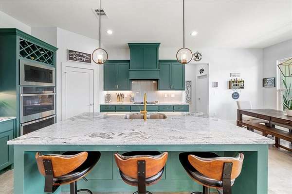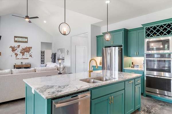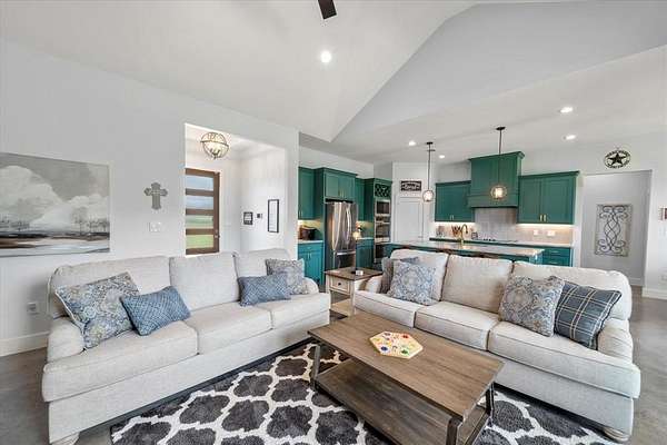 - Decorative Lighting, Granite Counters, Kitchen Island, Open Floorplan, Vaulted Ceiling(s)